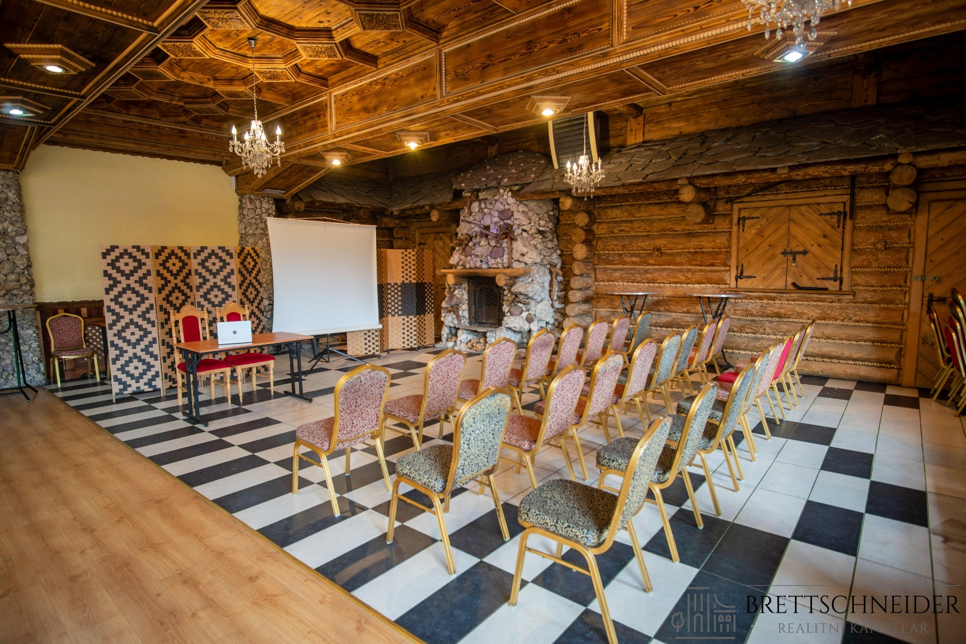 K dispozici recepce, restaurace s kuchyní, klub s tanečním parketem, samostatné salónky, stylové jídelny, dvě konferenční místnosti o 60 m2 a 200 m2 , dále haly, SPA, relaxační místnosti v jednotlivých patrech, jacuzzi, skladovací prostory, nástrojárna nebo kancelář.