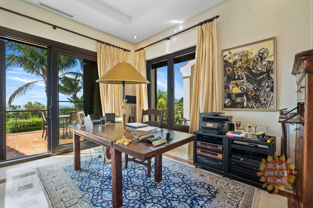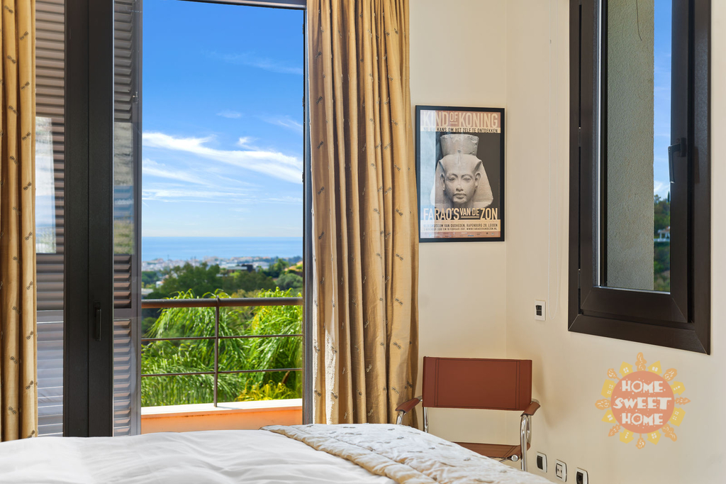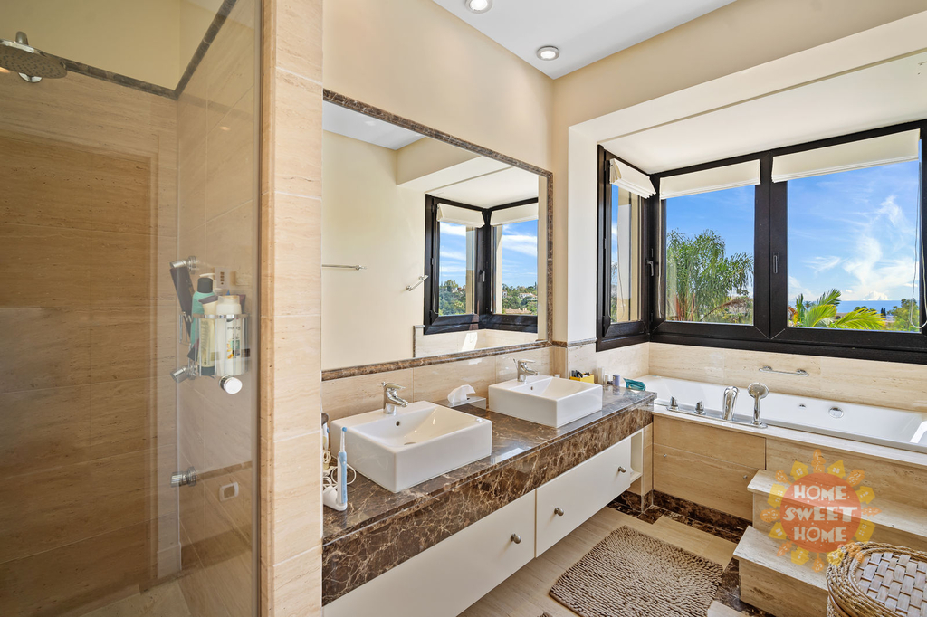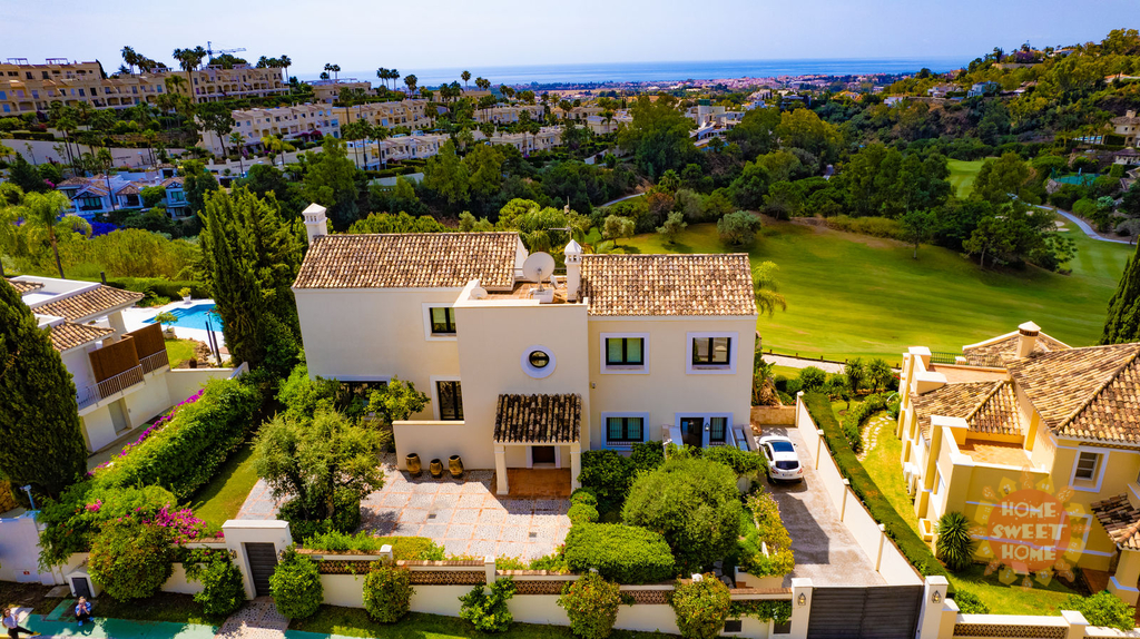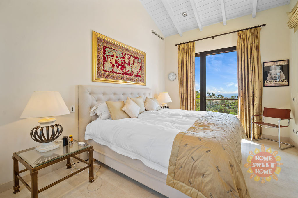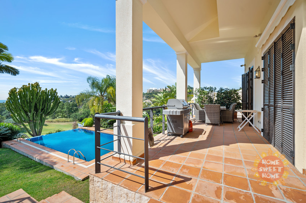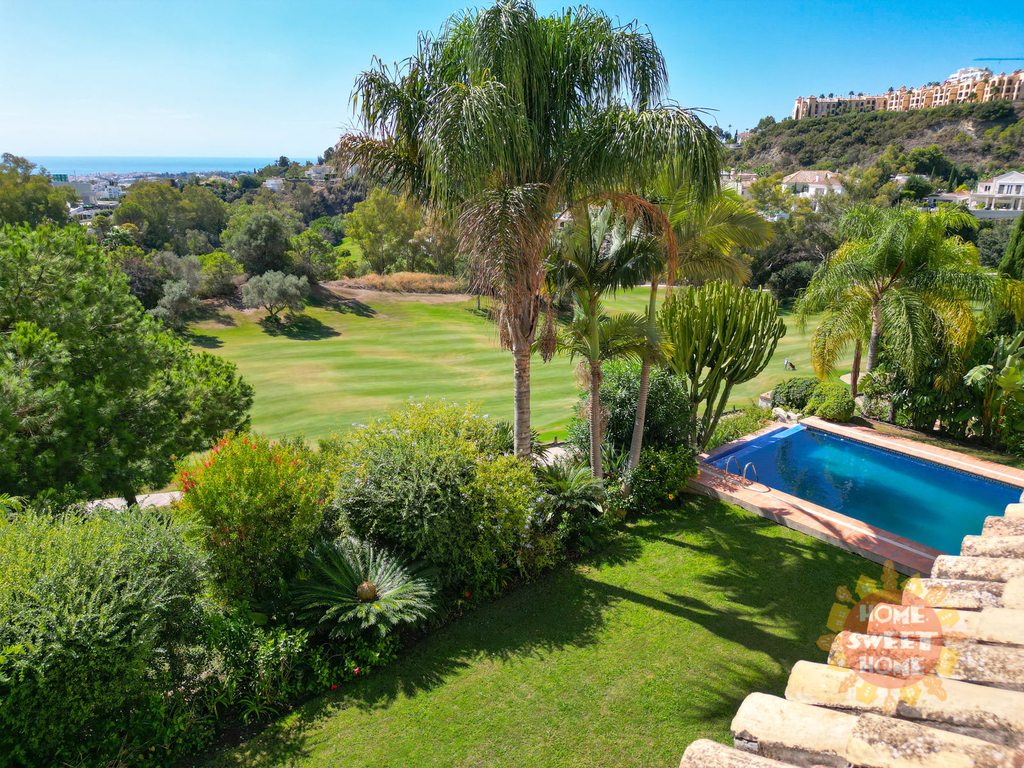 Fantastická vila s pěti ložnicemi a jižní orientací v lokalitě La Quinta, Benahavis. Vila se nachází v jen kousek od místní občanské vybavenosti a měst Puerto Banus a Marbella. Nemovitost má v přízemí prostornou vstupní halu vedoucí do velkého obývacího pokoje, plně vybavenou kuchyň a jídelnu, a toaletu pro hosty. Ze všech místností na této úrovni je přístup na terasu, do soukromé zahrady a k bazénu, od kus nabízí krásný výhled na moře a golfové hřiště. V prvním patře se nachází hlavní ložnice s klenutými stropy, šatnou a koupelnou, dvě ložnice pro hosty a koupelna pro hosty. Ve spodním patře nemovitosti se nachází kuchyň a jídelna s nezávislým přístupem ze zahrady, dva pokoje pro hosty a kinosál. K dalšímu vybavení vily patří klimatizace s funkcí topení a chlazení, alarm, elektrické žaluzie a garáž.