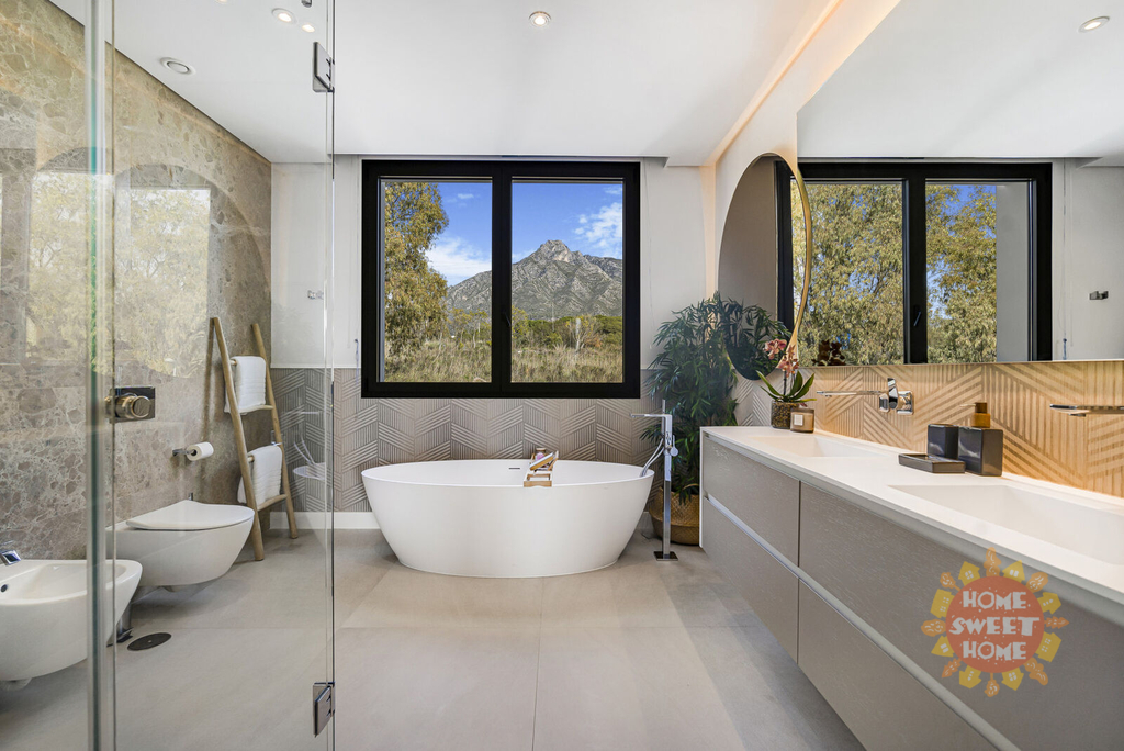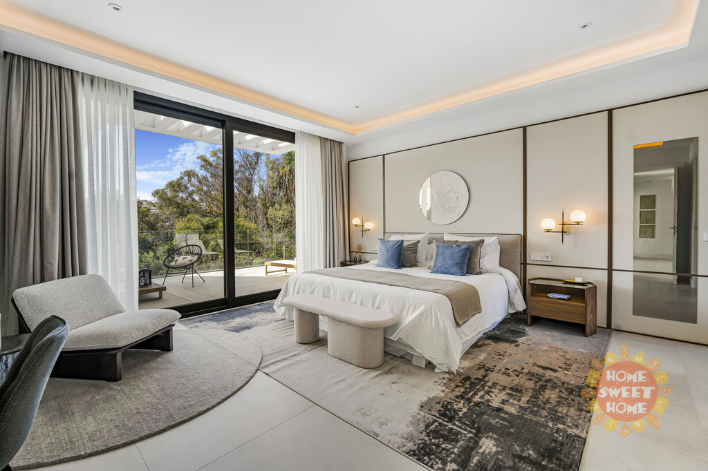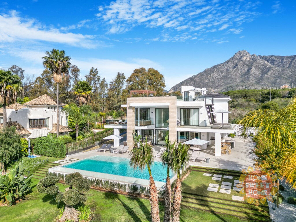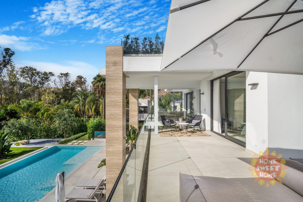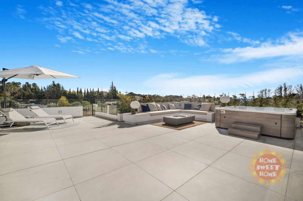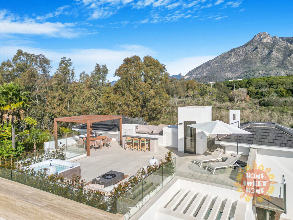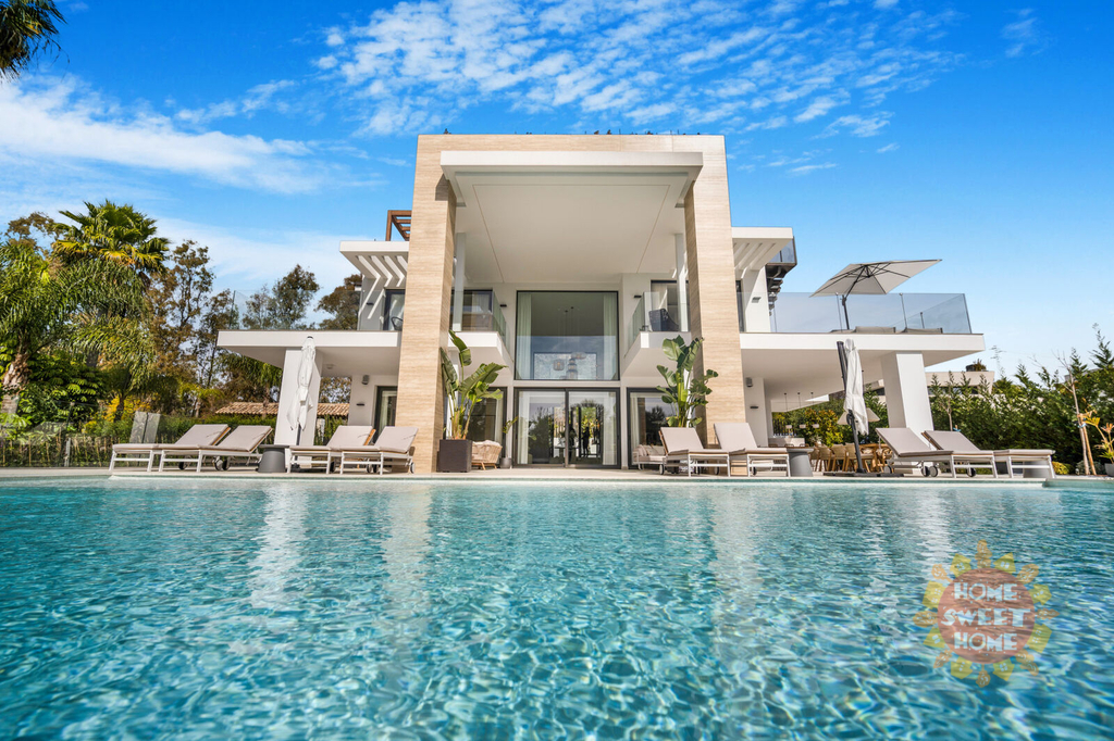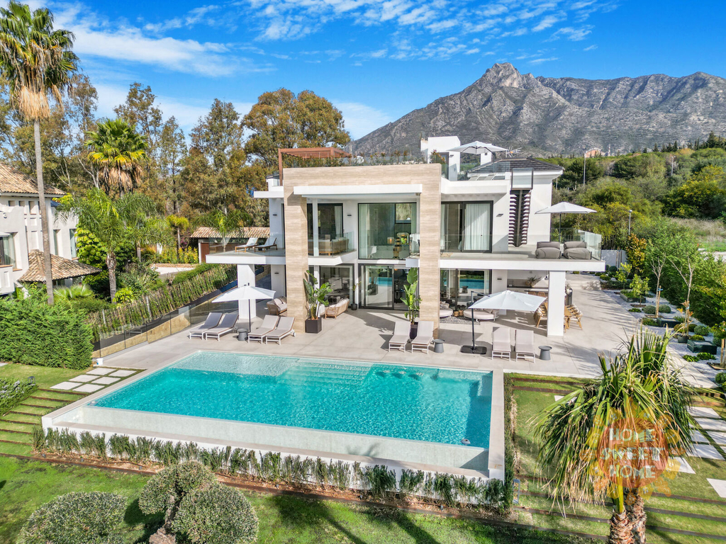 Exkluzivní vila se šesti ložnicemi, orientovaná na jih, v prestižní uzavřené komunitě Villas Del Marquez na Zlaté míli v Marbelle, jen kousek od pláže a Puerto Banus. Tato impozantní nemovitost se může pochlubit soukromou zahradou s vyhřívaným bazénem, otevřeným obývacím pokojem a jídelnou s přímým vstupem do zahrady, špičkovou otevřenou kuchyní a apartmánem pro hosty. V prvním patře jsou dvě apartmá pro hosty; luxusní hlavní apartmá se šatnou a soukromou terasou; z této úrovně je také přístup do velkého solária s nádherným výhledem na moře a s vířivkou a venkovní kuchyní. Ve spodní úrovni nemovitosti se nachází zábavní místnost s kulečníkem, salonkem a barem; dva apartmány pro hosty a přístup do garáže. K dalším prvkům patří soukromá garáž pro tři auta, klimatizace s teplou a studenou vodou, vestavěné skříně, alarm, bezpečnostní kamery a výtah spojující všechny úrovně. Neuvěřitelná nemovitost ideální pro celoroční bydlení nebo investici do pronájmu s již platnou turistickou licencí.