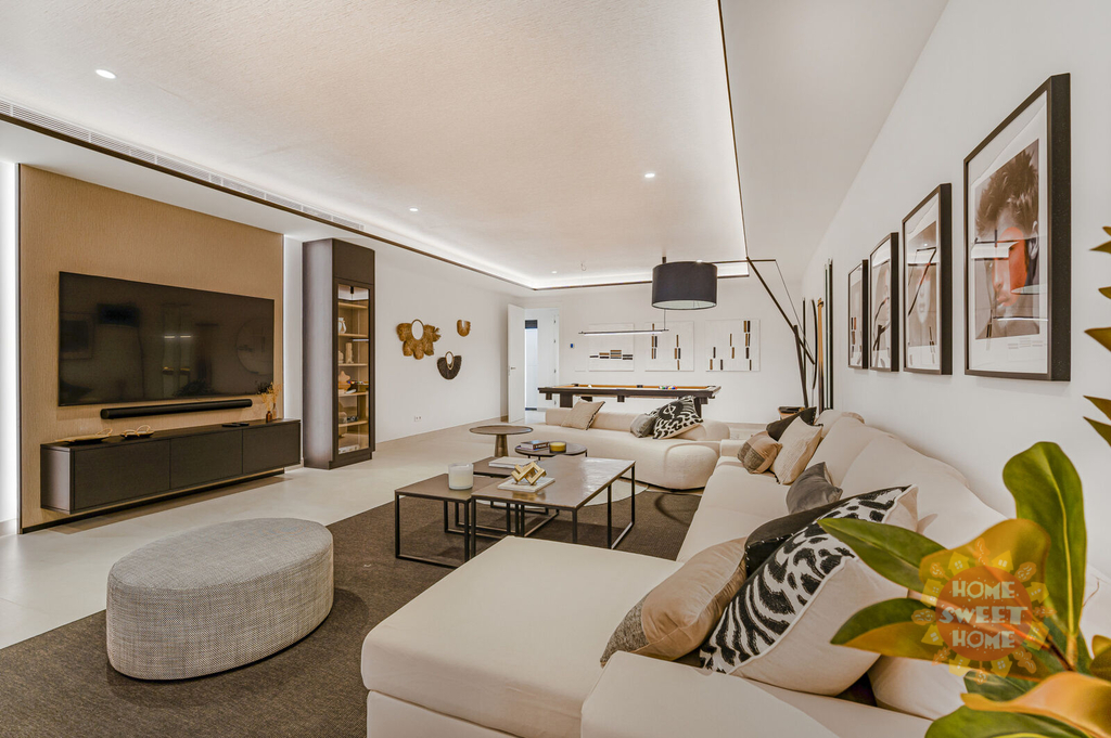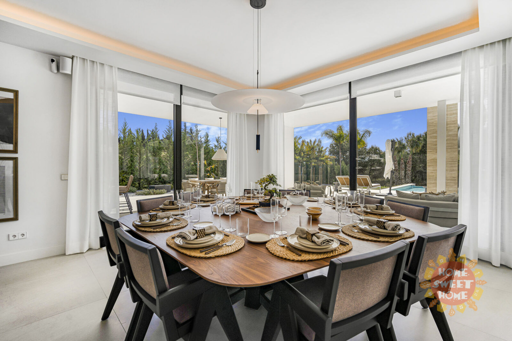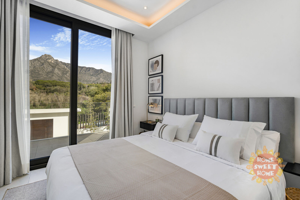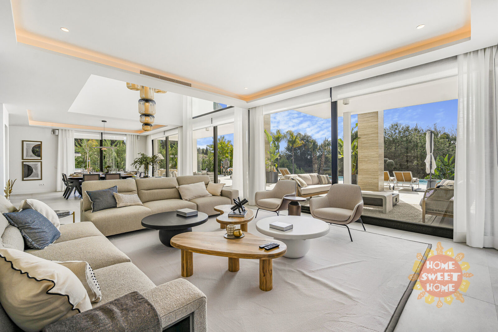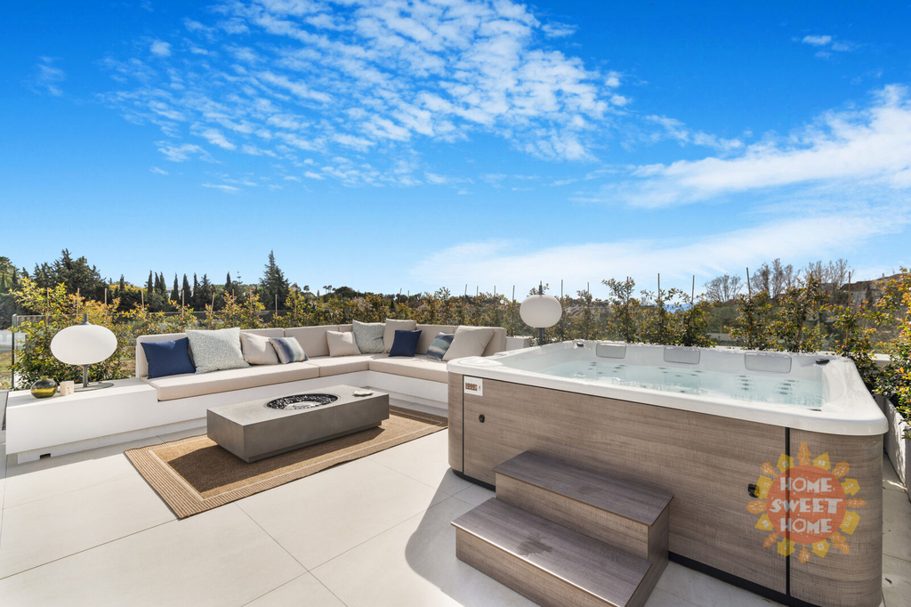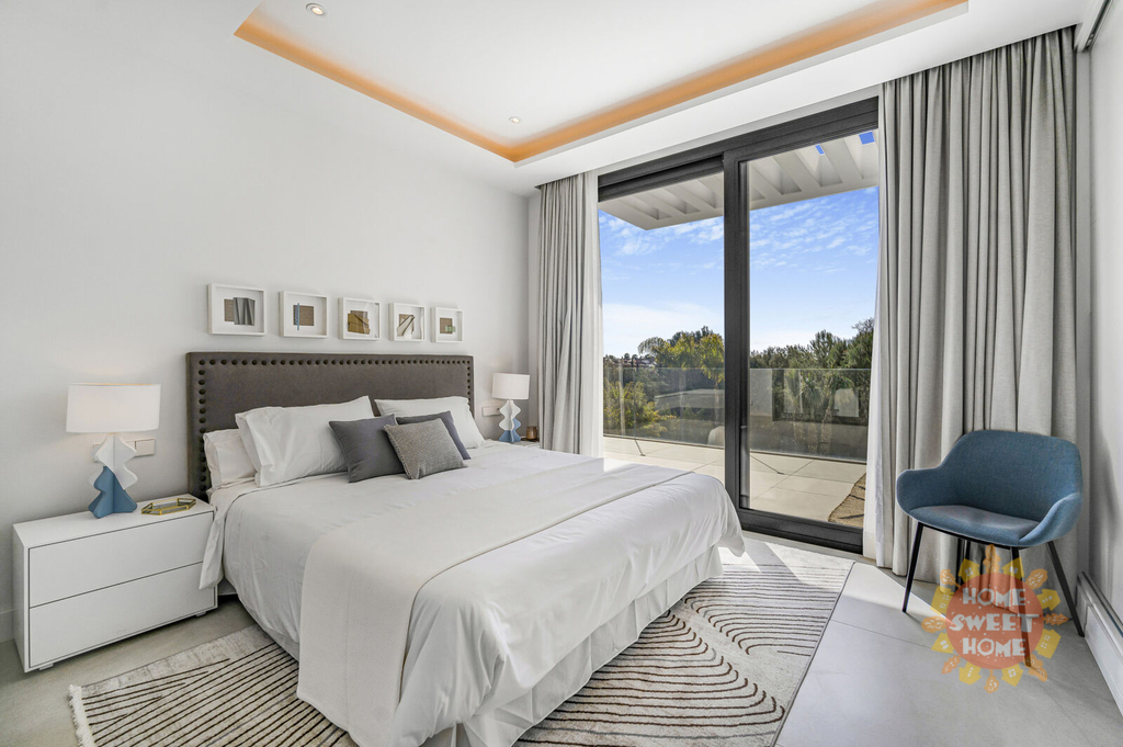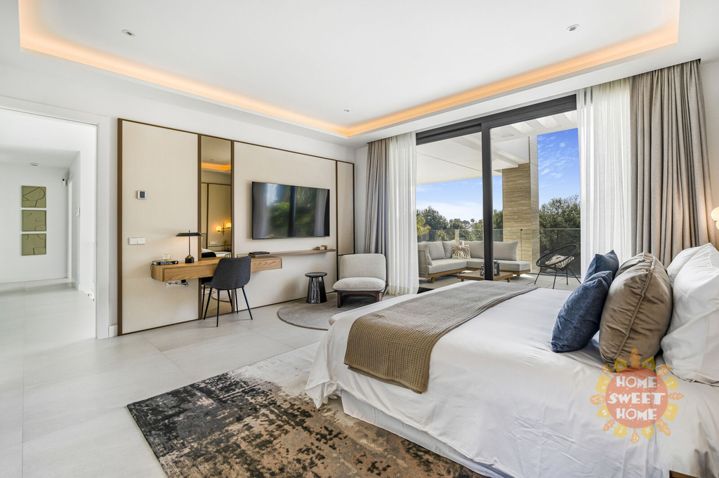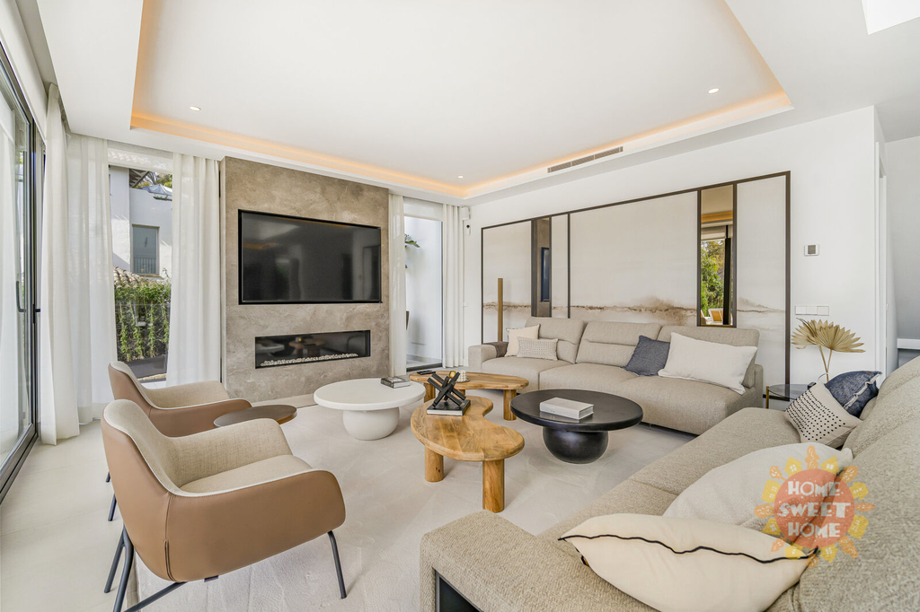 Exkluzivní vila se šesti ložnicemi, orientovaná na jih, v prestižní uzavřené komunitě Villas Del Marquez na Zlaté míli v Marbelle, jen kousek od pláže a Puerto Banus. Tato impozantní nemovitost se může pochlubit soukromou zahradou s vyhřívaným bazénem, otevřeným obývacím pokojem a jídelnou s přímým vstupem do zahrady, špičkovou otevřenou kuchyní a apartmánem pro hosty. V prvním patře jsou dvě apartmá pro hosty; luxusní hlavní apartmá se šatnou a soukromou terasou; z této úrovně je také přístup do velkého solária s nádherným výhledem na moře a s vířivkou a venkovní kuchyní. Ve spodní úrovni nemovitosti se nachází zábavní místnost s kulečníkem, salonkem a barem; dva apartmány pro hosty a přístup do garáže. K dalším prvkům patří soukromá garáž pro tři auta, klimatizace s teplou a studenou vodou, vestavěné skříně, alarm, bezpečnostní kamery a výtah spojující všechny úrovně. Neuvěřitelná nemovitost ideální pro celoroční bydlení nebo investici do pronájmu s již platnou turistickou licencí.