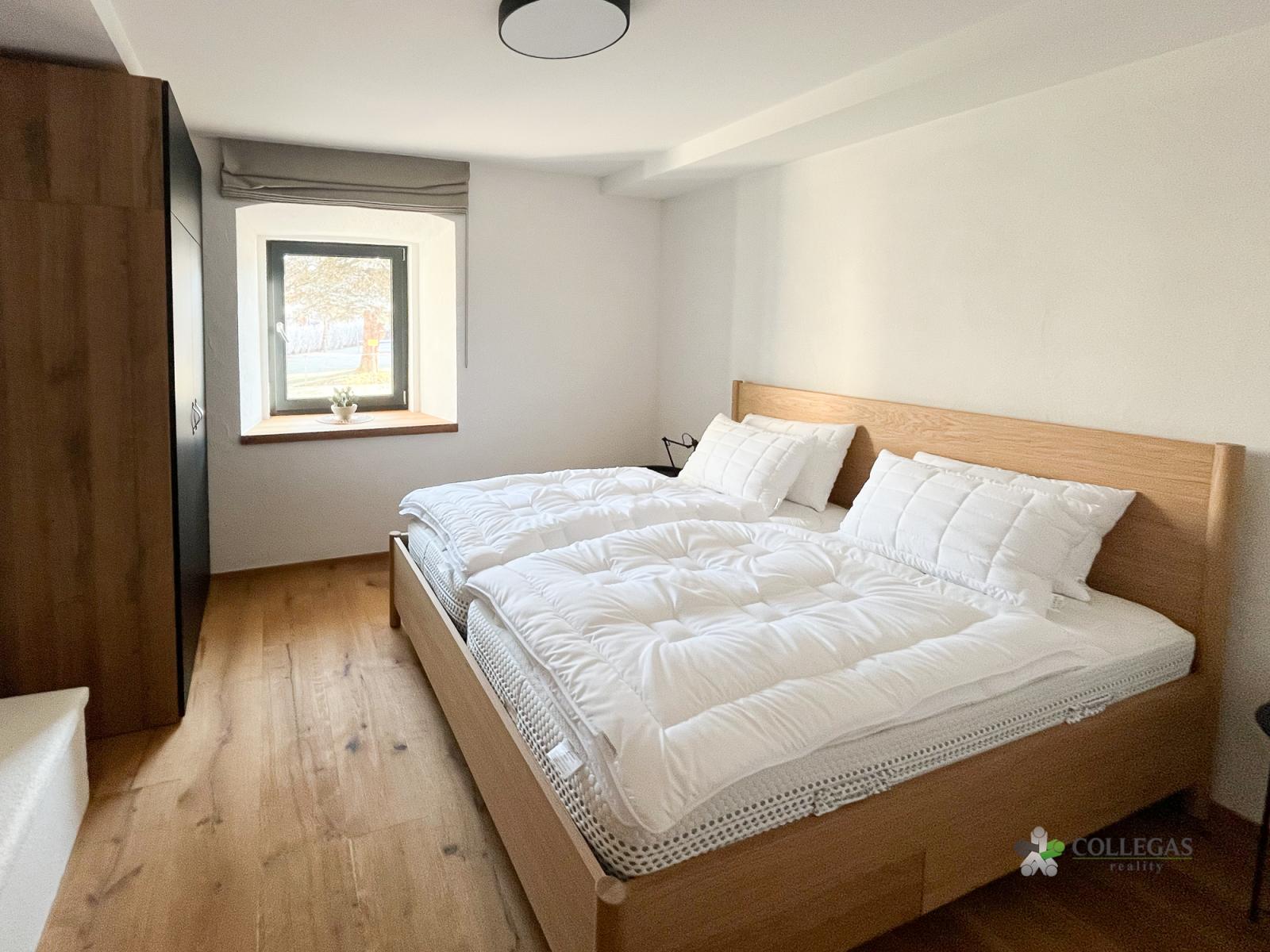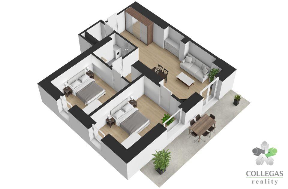 Apartmán s dispozicí 3+kk se nachází v přízemí. Apartmán je již plně zařízený. Vybavení není zahrnuto v ceně. K apartmánu patří terasa a dvě parkovací stání.