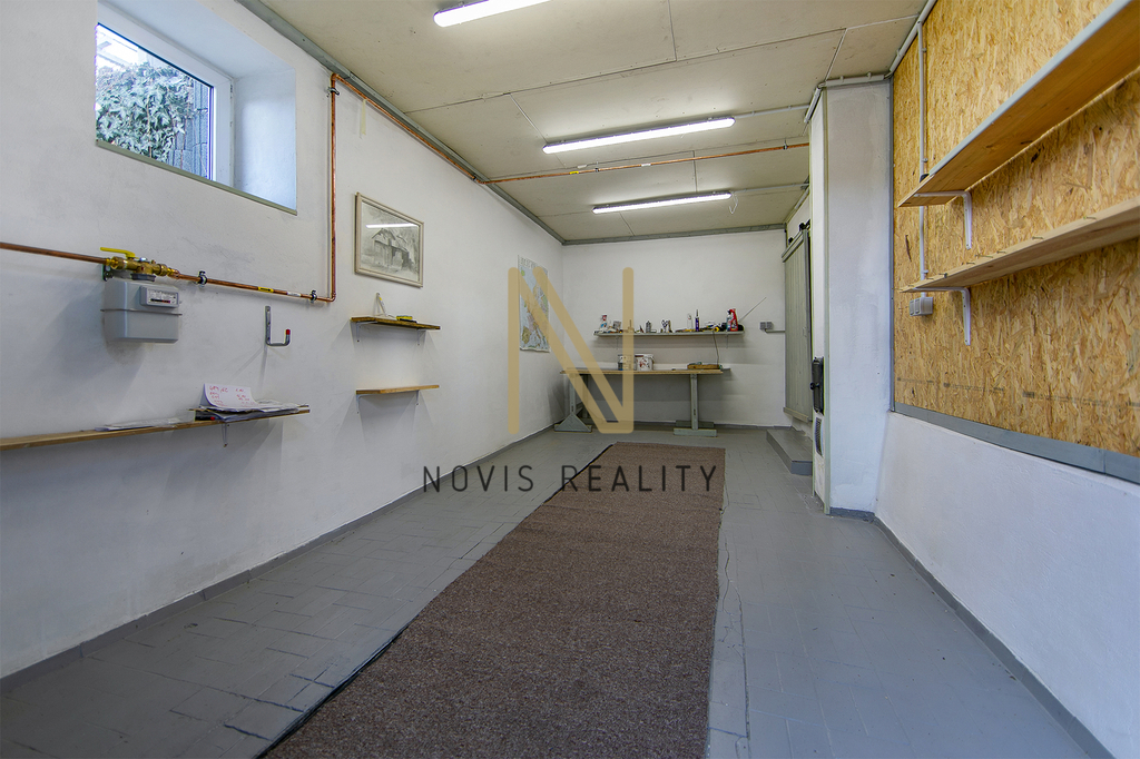 • Garáž o velikosti 19 m² s montážní jámou, ideální pro automechaniky či kutily.