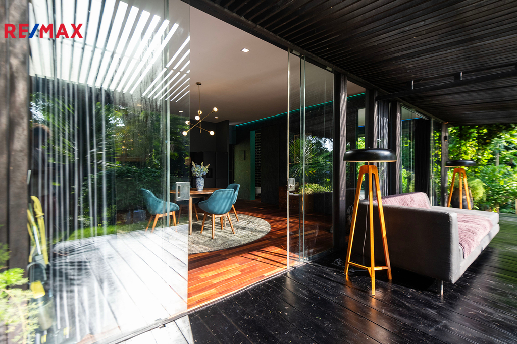 Prostorné interiéry, velkoformátová okna propojující interiér s přírodou, dřevěné podlahy, elegantní kuchyně s výhledem do zahrady, ložnice s přímým vstupem ven a velkolepý obývací prostor – to vše dohromady tvoří neobyčejný domov. Vila disponuje dvěma ložnicemi, ale prostorově působí jako rezidence mnohem větší kategorie.