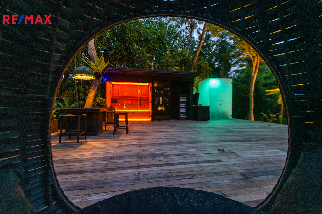 Tato vila se nachází v naprostém soukromí, obklopena bujnou zelení tropické zahrady o rozloze více než 1800 m². Součástí pozemku je hlavní vila se dvěma ložnicemi a prostorným obývacím prostorem, stejně jako samostatný apartmán, který je ideální pro hosty, pronájem nebo jako klidné místo pro práci. Přírodní materiály, architektura spojená s okolní krajinou a promyšlené detaily vytvářejí harmonické prostředí, které se těžko popisuje – musí se zažít.