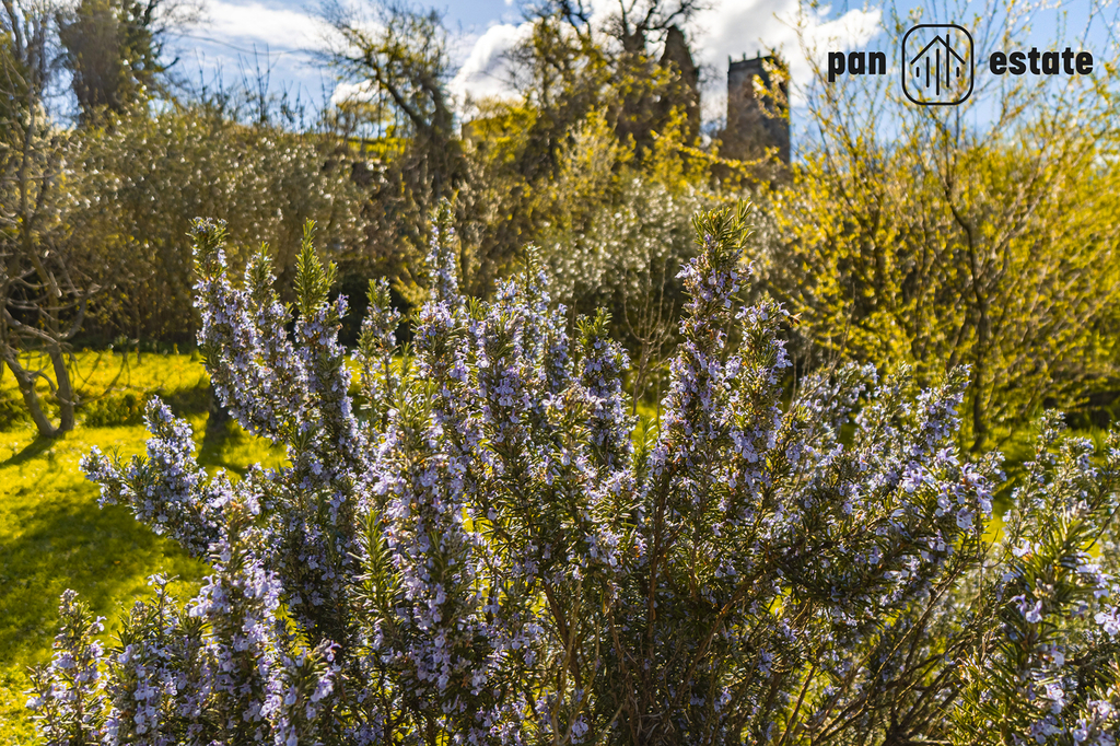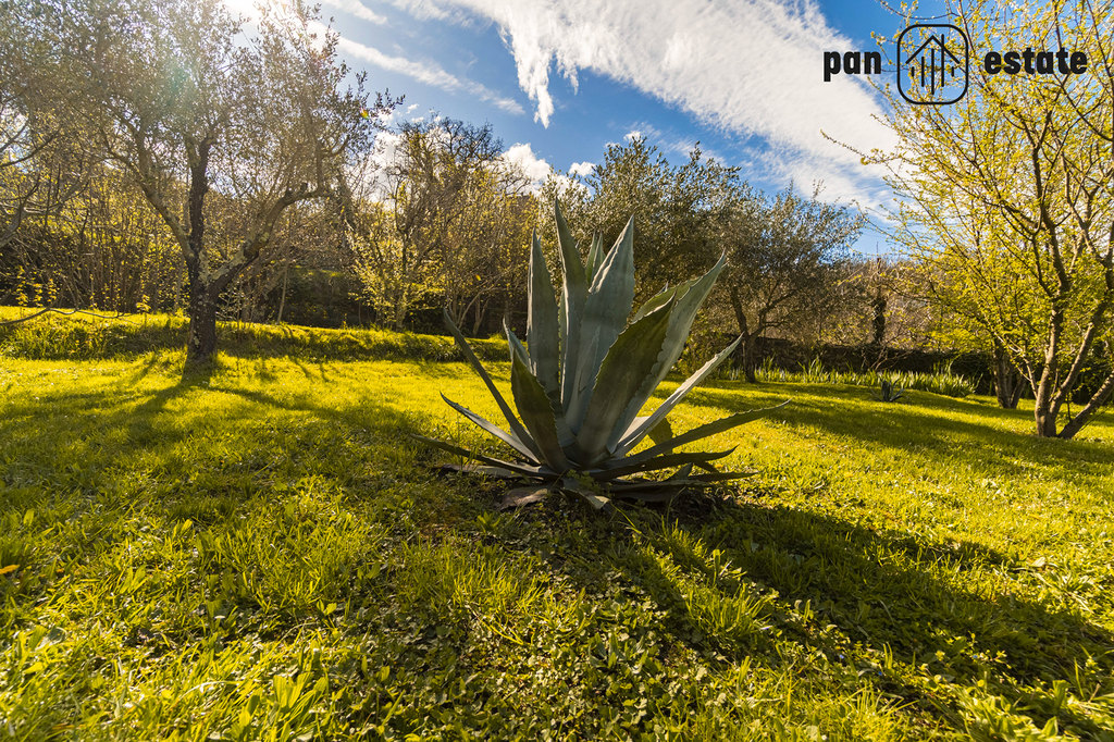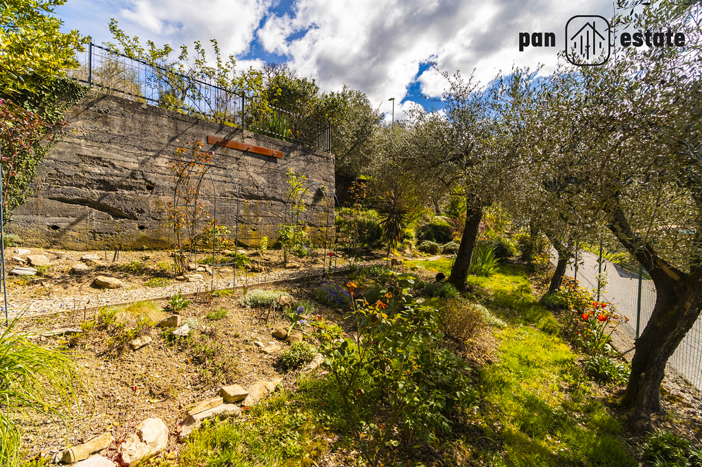 Další zázemí: skladové prostory, samostatná garáž, terasa nad sklady, zahrada s olivovníky, ovocnými stromy a výhledem do krajiny. Celková plocha pozemků cca 850 m²