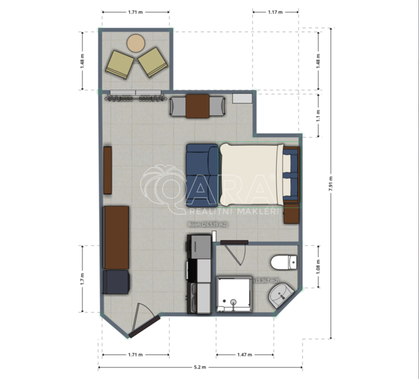 Nabízím ke koupit malý byt (studio – 1+kk) v rezidenčním komplexu Princess ve skvělé lokalitě s Hurgádě.