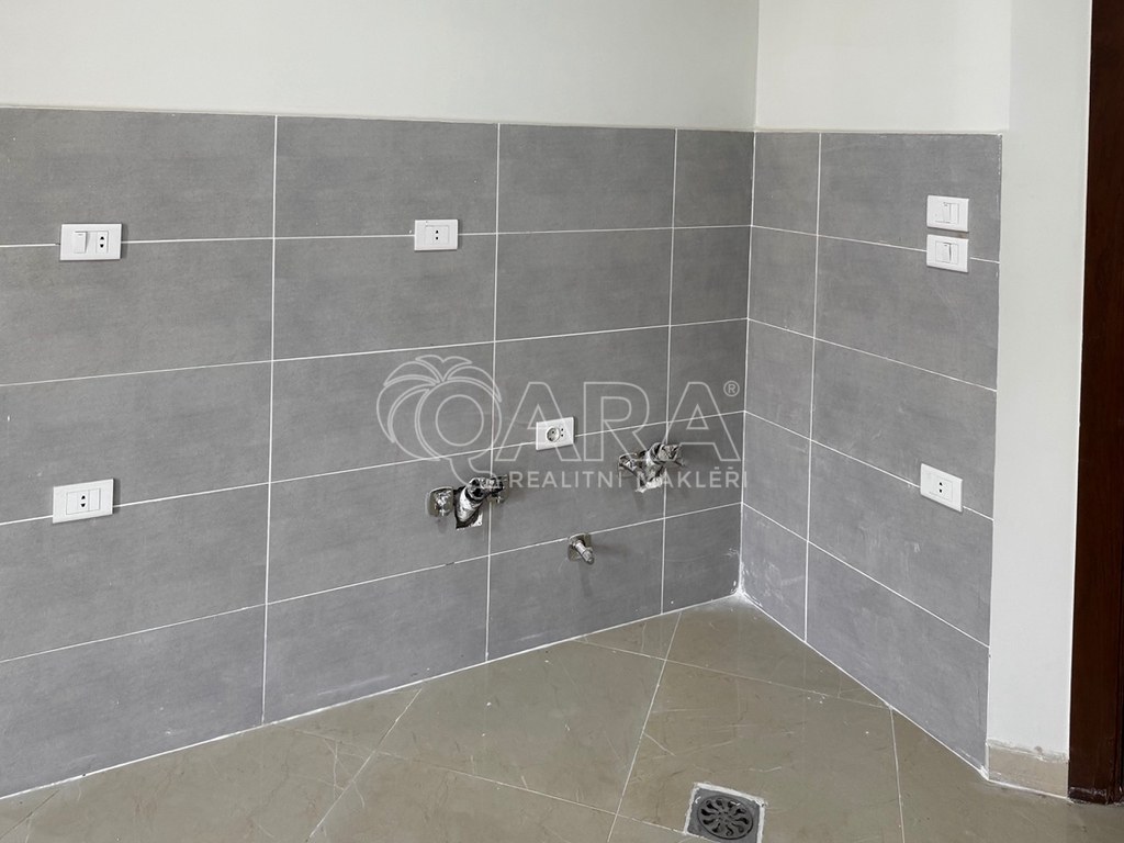 Byt je dokončený, má podlahy z keramické dlažby, elektrické instalace včetně zásuvek a vypínačů, přípravu na instalaci kuchyňské linky a plně osazenou koupelnu s WC, umyvadlem a sprchovým koutem. S dalším vybavením bytu rádi pomůžeme od návrhu až po realizaci na klíč.