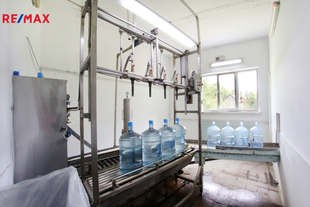 Nemovitost se specializuje na výrobu balené zdravé vody. Hala je postavena na pozemku s vlastním pramenem zdravé vody, který je součástí prodeje. V hale je stáčírna minerální vody, která je plně vybavena. Výrobna je ve stálém provozu, stačí jen převzít a pokračovat v podnikání. Licence na odběr pitné vody je k dispozici.