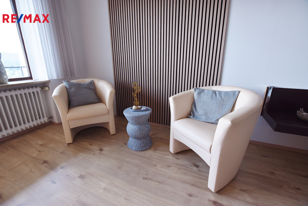 Na lodžii se nachází zahradní nábytek, možnost posezení s výhledem do kraje.