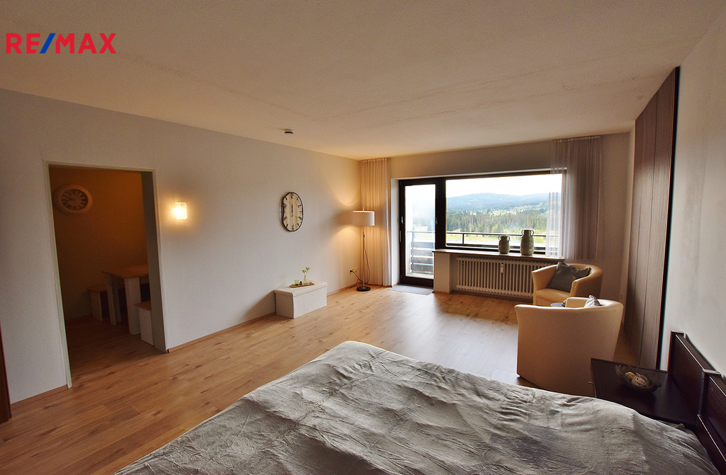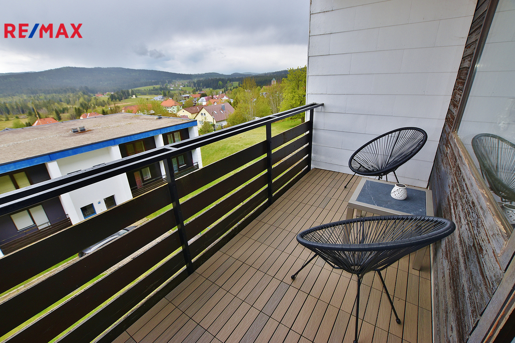 Exkluzivně nabízíme k prodeji apartmánový byt o dispozici 1+kk s výměrou 38,68 m2 v příhraniční obci Haidmühle na německé straně Šumavy.