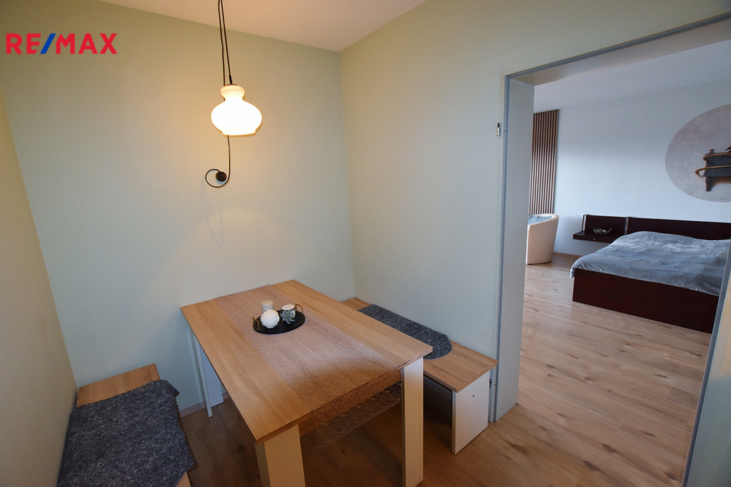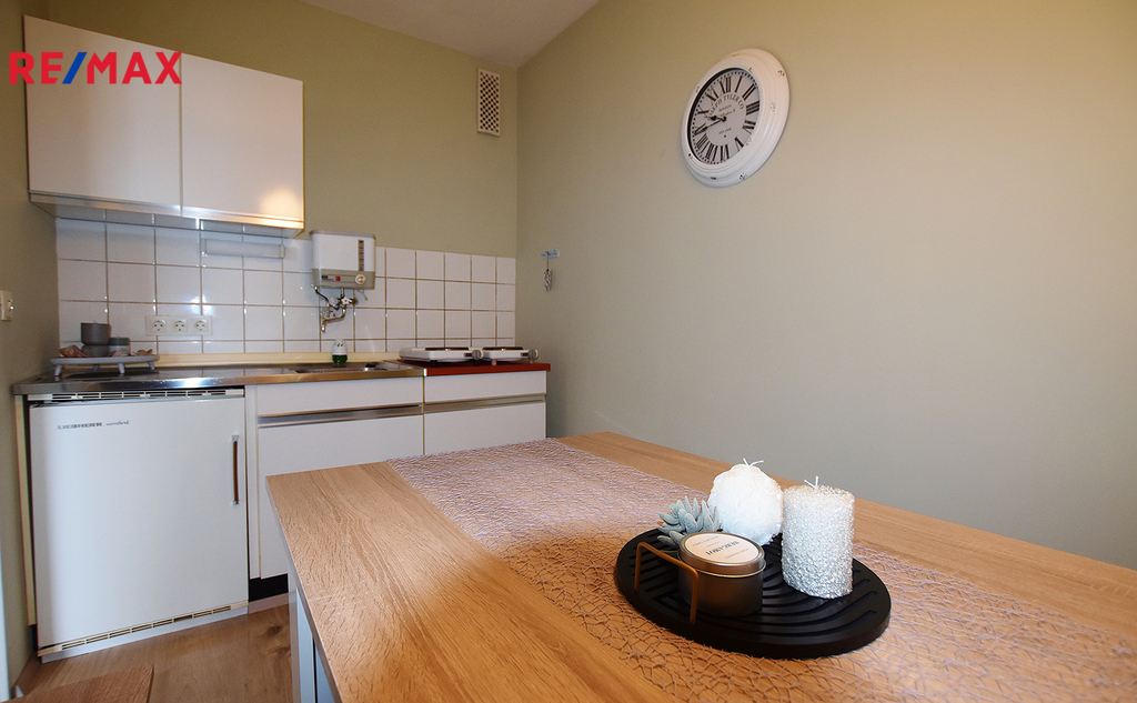 Apartmán je byl zrekonstruován a je částečně zařízený. V kuchyni se nachází kuchyňská linka s lednicí.