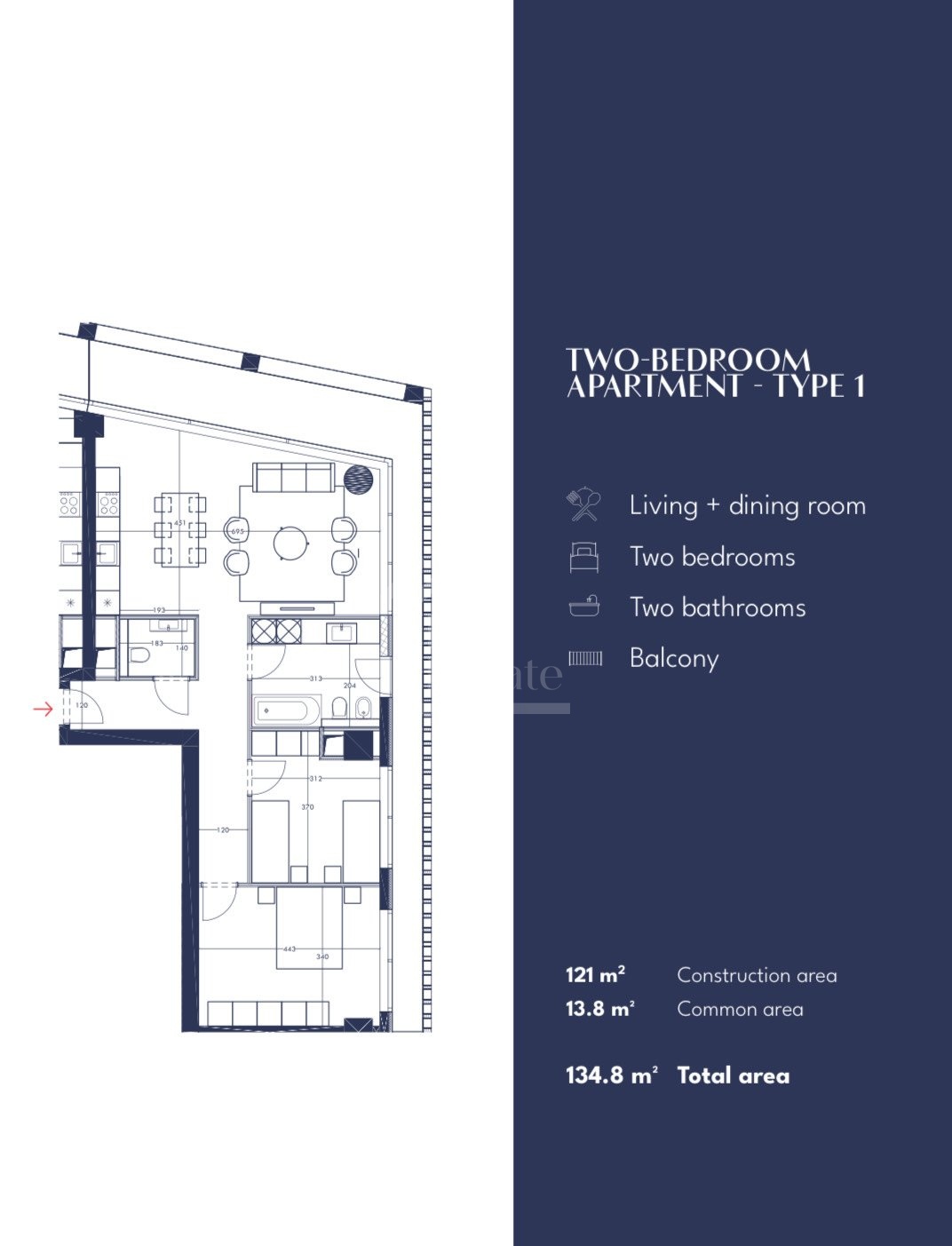 Cena tohoto apartmánu je 2900 EUR za m², což představuje skvělou investiční příležitost s potenciálem růstu hodnoty. Projekt je součástí moderního komplexu s hotelovou infrastrukturou, včetně hotelu Vlora Marriott, který nabízí nadstandardní služby a zázemí.