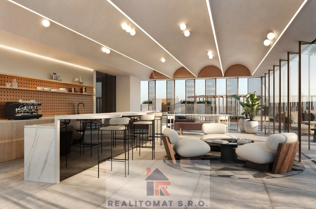 Každý byt je navržen tak, aby spojoval pohodlí, světlo a funkčnost. Interiéry využívají kombinaci světlých tónů, kartáčovaného zlata a elegantních detailů v odstínech terakoty a vínové.