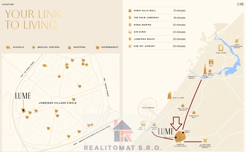 Za projektem stojí renomovaný developer S&S Developments, známý svými úspěšnými rezidenčními projekty jako The White Palace či Meydan Residences, ve spolupráci s českou realitní kanceláří Realitomat, která propojuje investory, developery a koncové uživatele v městě budoucnosti. Důraz na kvalitu provedení, dlouhodobou hodnotu a praktické využití prostoru dělá z LUME jednu z nejzajímavějších novinek na trhu.