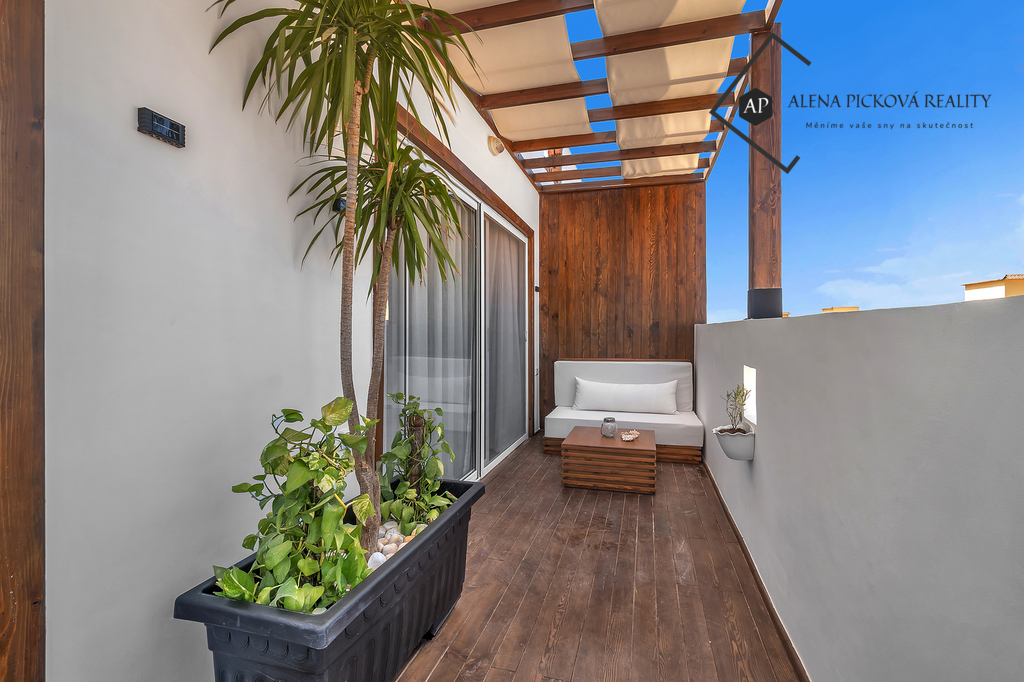 Byt se vyznačuje nadstandardním vybavením, které zahrnuje kvalitní materiály a estetické prvky, jež uspokojí nejnáročnější klientelu. Každý detail byl pečlivě promyšlen, aby poskytoval nejen vysokou funkčnost, ale také maximální komfort. Přístup na prostornou terasu, která je k dispozici z každé místnosti, nabízí jedinečné možnosti pro odpočinek a relaxaci. Je to ideální místo pro vychutnání si ranní kávy při východu slunce nebo romantických večerů při pohledu na západ slunce.