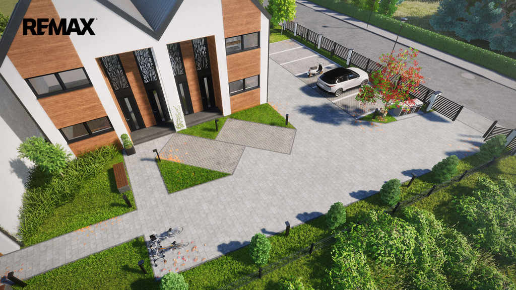 - Oplocený areál, dokončené okolí – zeleň, chodníky, dlažba