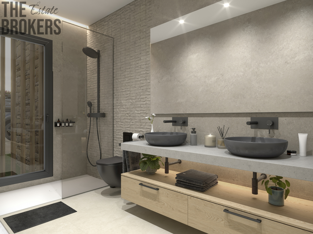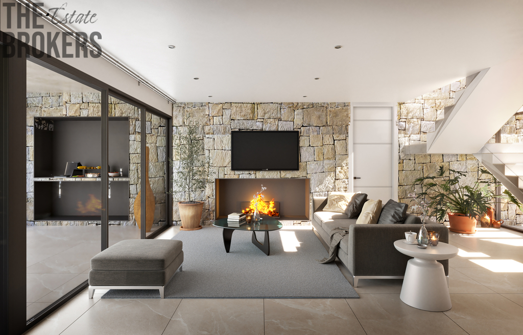 Přízemí: Zahrnuje prostornou dvoulůžkovou ložnici s koupelnou en-suite a soukromou terasou. Obývací a jídelní prostory v otevřeném plánu navazují na sluncem zalité terasy. Stylová kuchyně je vyrobena z prémiových materiálů.