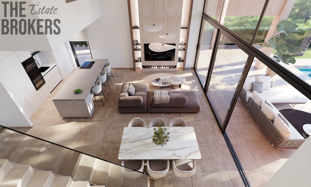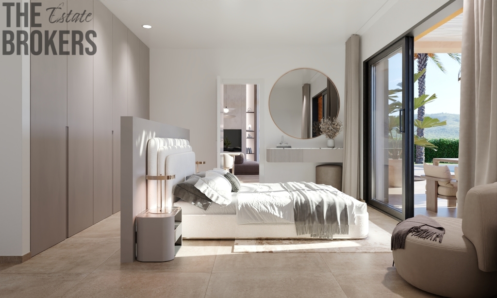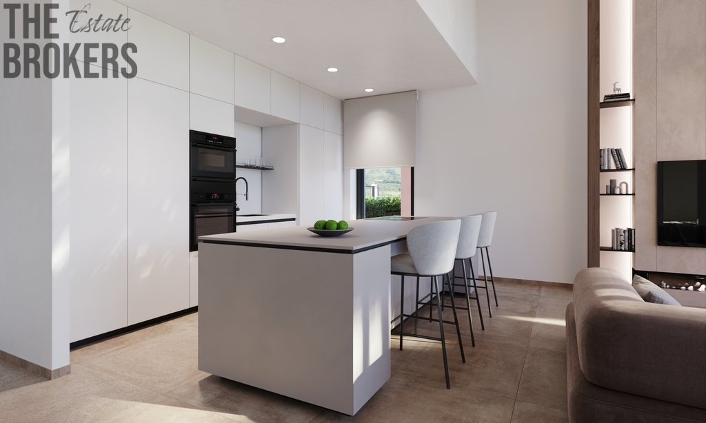 Přízemí: Zahrnuje obývací prostor v otevřeném plánu, který je spojen s jídelní částí a moderní kuchyní. Dále prostornou dvoulůžkovou ložnici s koupelnou en-suite a soukromou terasu. Velké posuvné dveře propojují vnitřní prostor s rozlehlou terasou a upravenou zahradou.