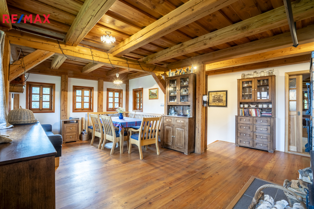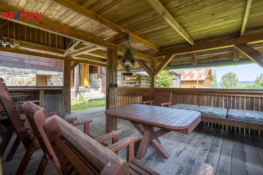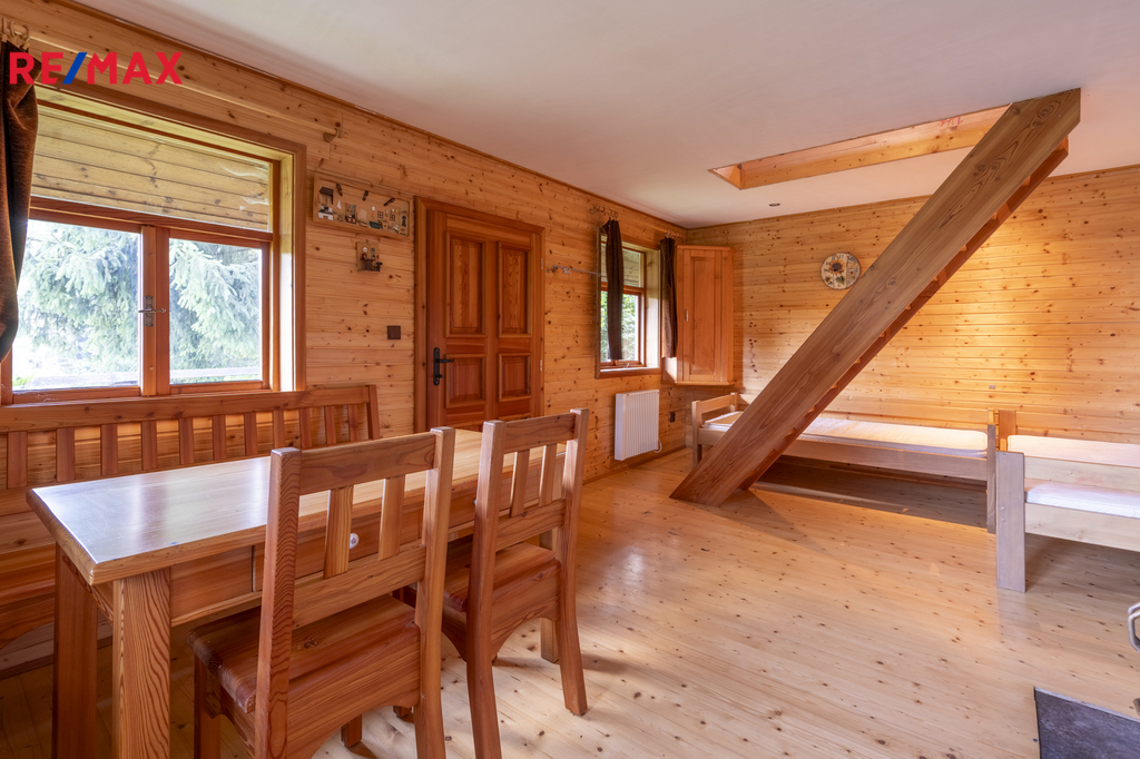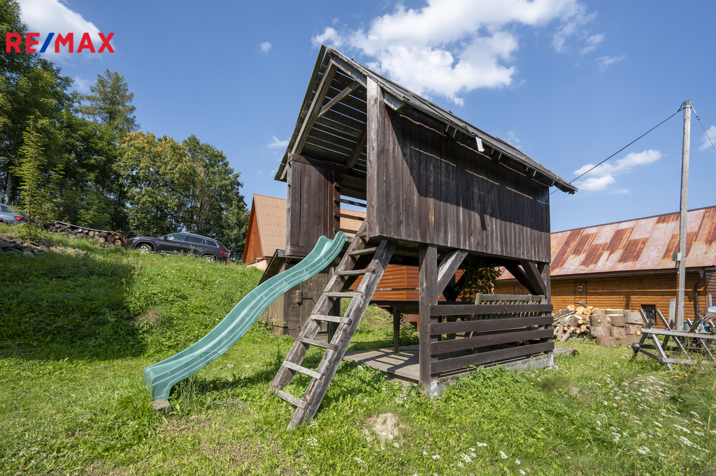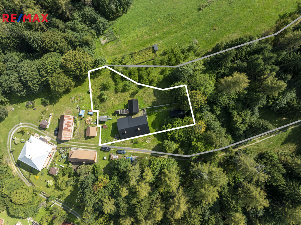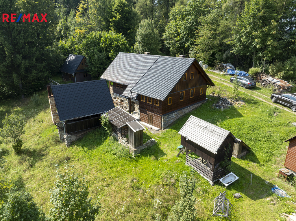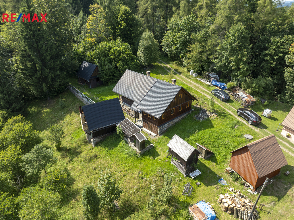 Nemovitost se prodává jako celek – spolu s malým domkem pro hosty, grilovacím altánem z masivu, dětským domečkem a sadem s ovocnými stromy. Je možnost přikoupit podíly na okolních loukách a lesích. Díky poloze na konci příjezdové cesty, kde už začíná jen les, si zde užijete maximální soukromí a klid.