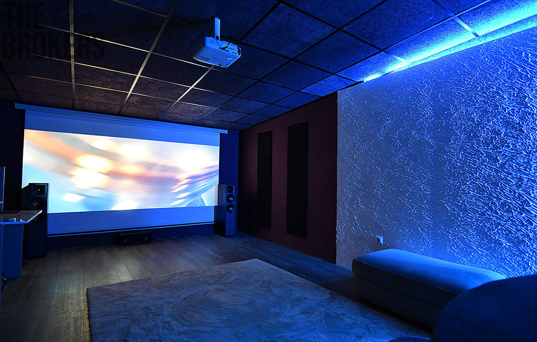 Špičkové soukromé kino se zvukovým systémem Klipsch 5.1 a barem s tanečním parketem.