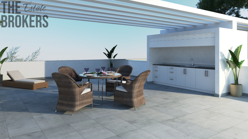 Všechny apartmány mají přístup k společnému bazénu s LED osvětlením, umělou kaskádou a solární sprchou. Nemovitosti v nejvyšším patře zahrnují letní kuchyni na soláriu, kompletní s žulovou pracovní deskou a předinstalací pro pračku a mini-ledničku.