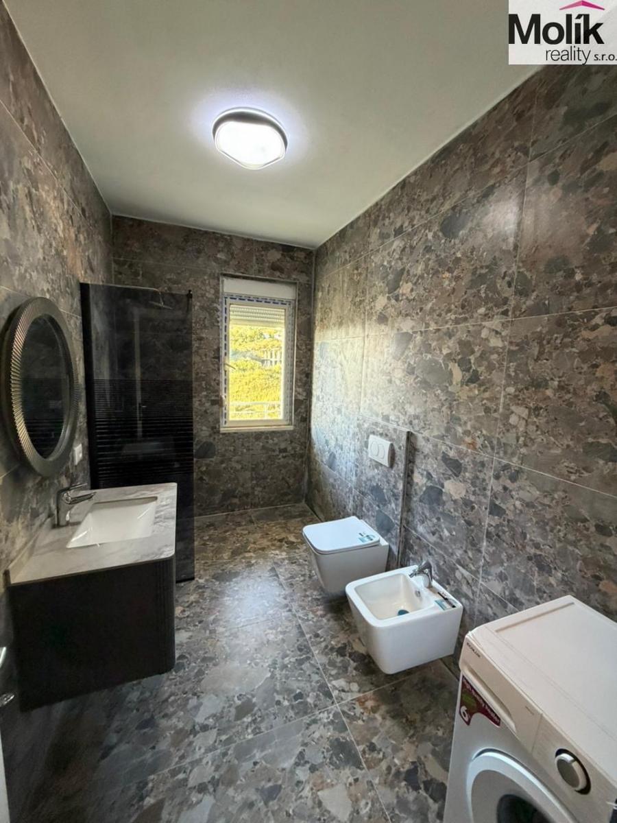 Nabízíme k prodeji 3+kk apartmán v oblasti Shkembi i Kavajes o celkové ploše 110m/2, který se nachází ve 2. patře budovy. Apartmán disponuje obývacím pokojem s kuchyňským koutem, 2 ložnicemi, koupelnou s toaletou a verandou. Přístup na velkou terasu a krásný výhled na moře.