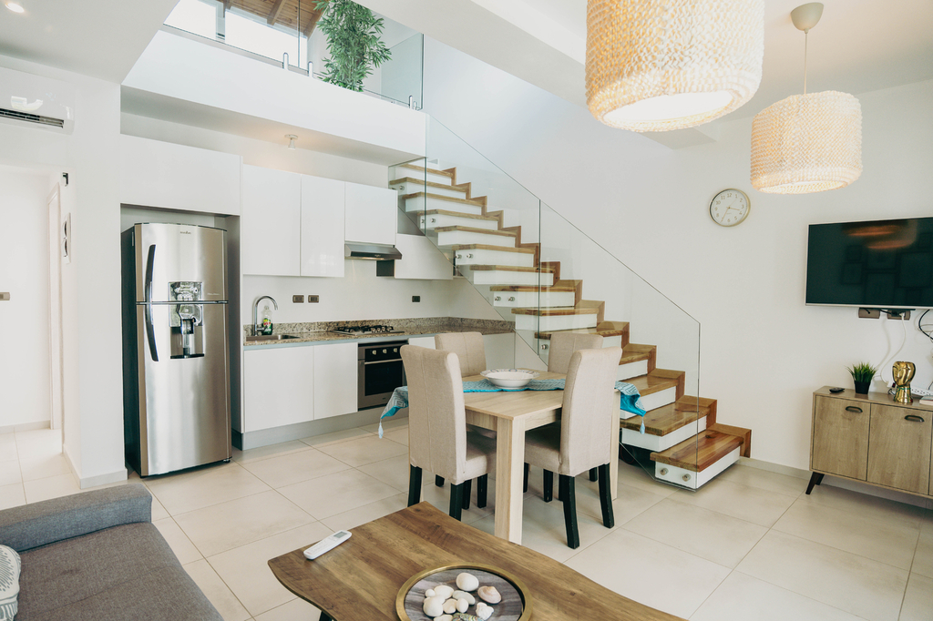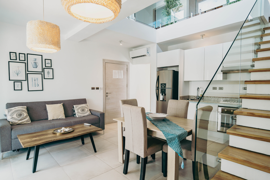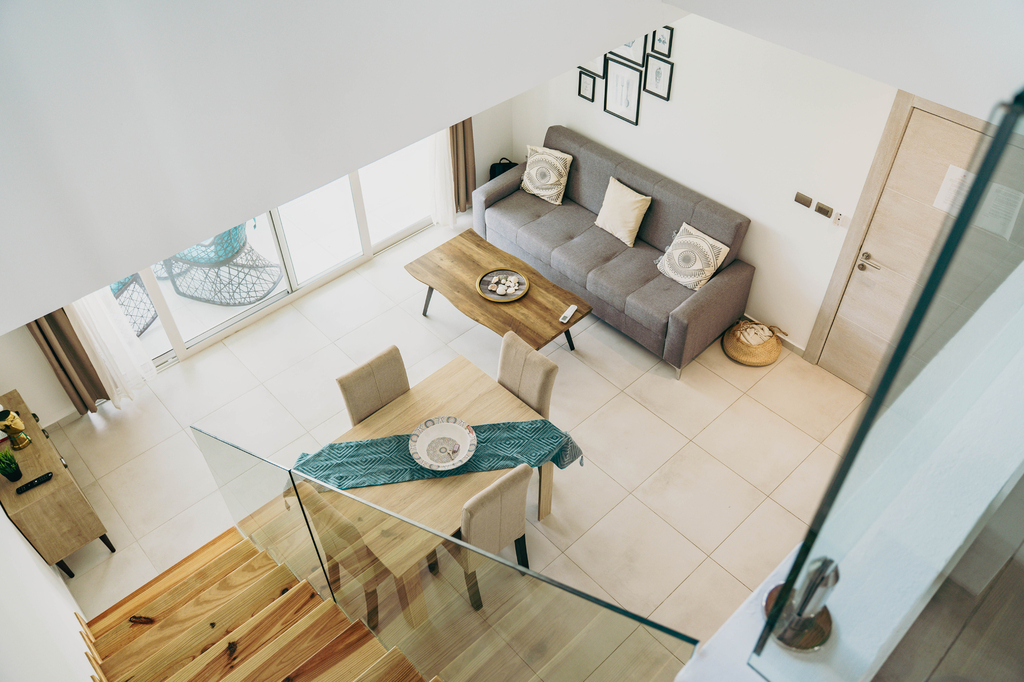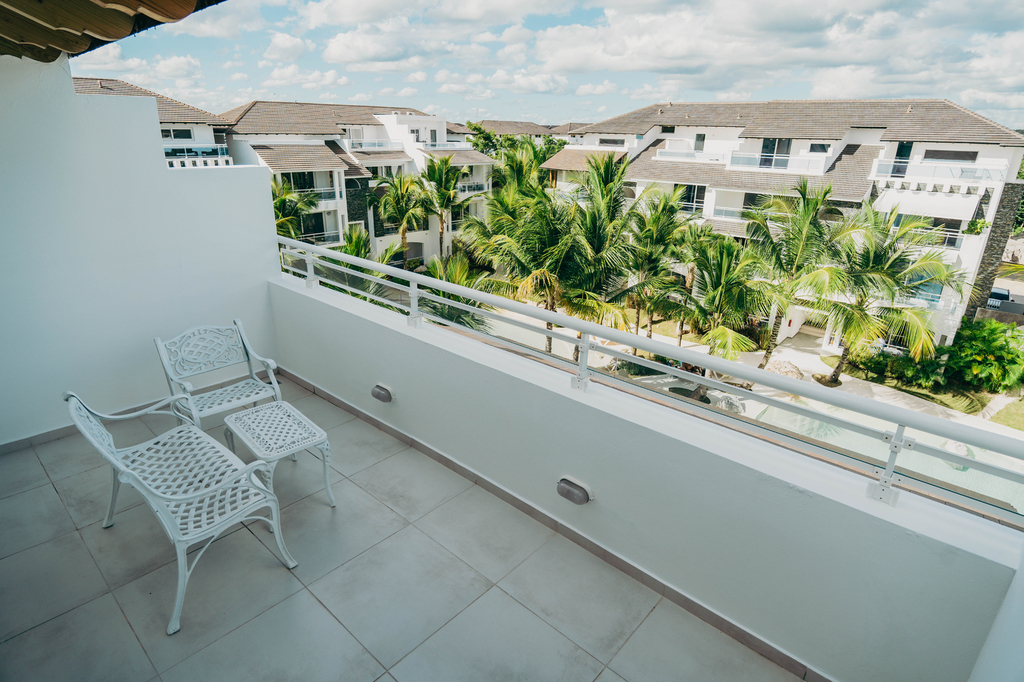 Objevte jedinečný mezonet se dvěma terasami a mini balkónem, které nabízejí kouzelný výhled na celou rezidenci obklopenou palmami – oáza klidu i karibské atmosféry přímo u vašeho domova.