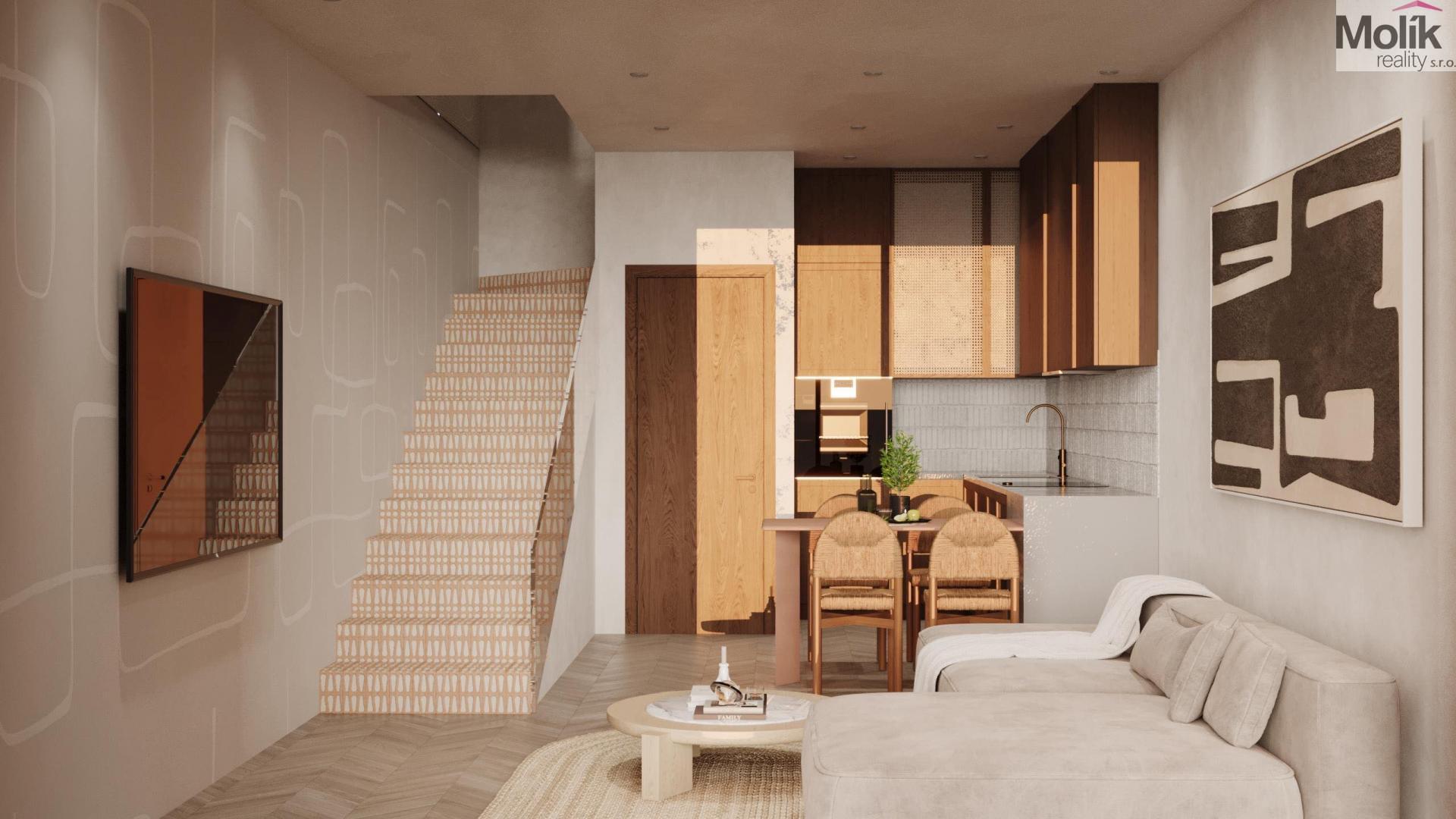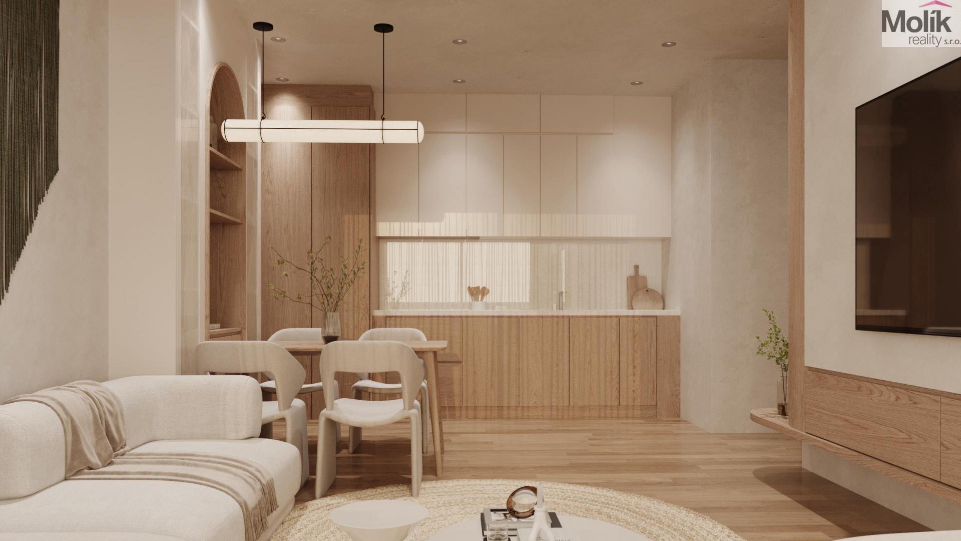 Prostorný obývací pokoj s kuchyňským koutem