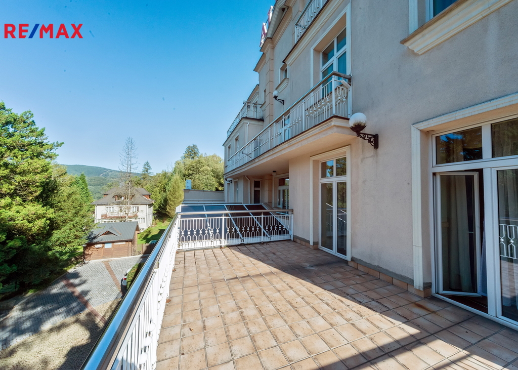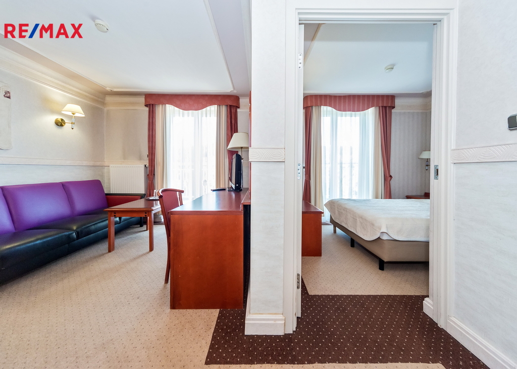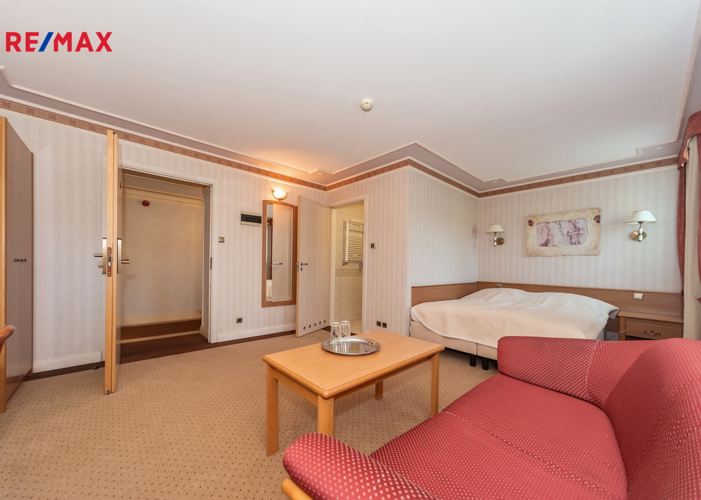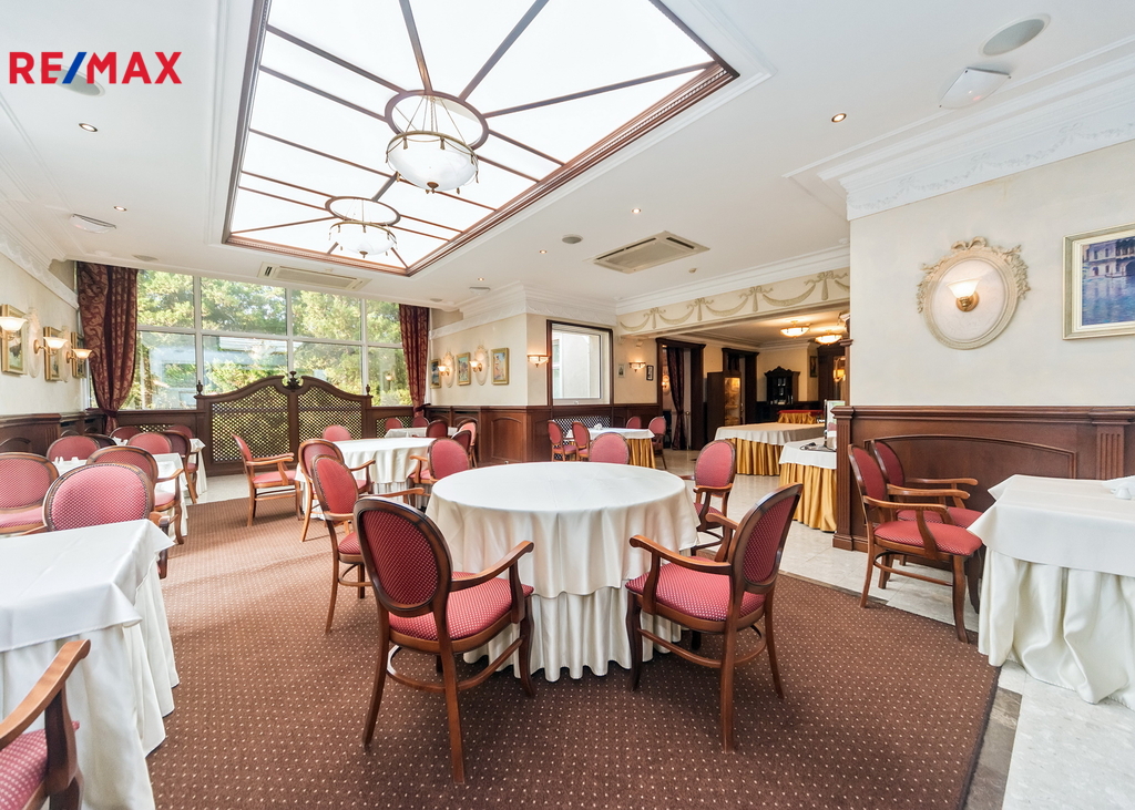 Čtyřpodlažní hotelová budova o rozloze cca 1 373,29 m² má 19 apartmánů a 54 lůžek. Standard je nejvyšší třídy: mramor, onyx, travertin, exotické dřevo, sklo, křišťál. Exkluzivní SPA: sauny, jacuzzi, masážní kabiny, koupelové pokoje. Restaurace s profesionálním kuchyňským zázemím. Druhá restaurace ve stavu „hrubé stavby“, k vlastní aranžaci. Konferenčně-bálový sál, prosklená veranda-kavárna, bar, elegantní lobby. Terasa s italskou zahradou a zralou vegetací. 30 parkovacích míst s možností realizace podzemního parkoviště. Na pozemku se nachází také rodinný dům o rozloze cca 239,17 m² s kompletním technickým zázemím a krby.