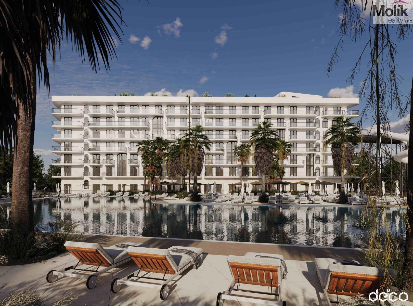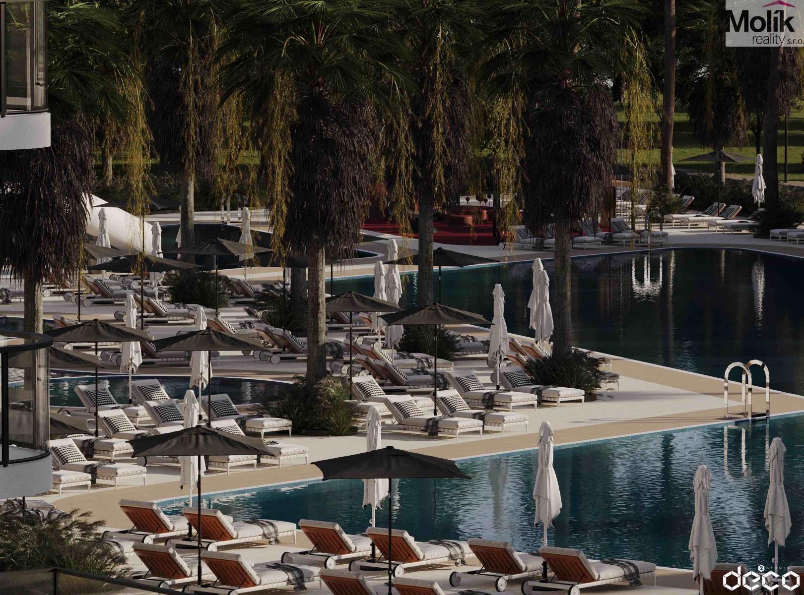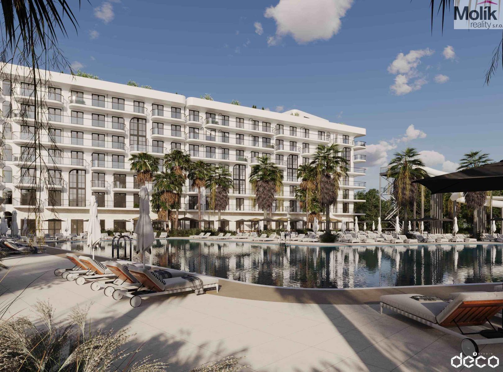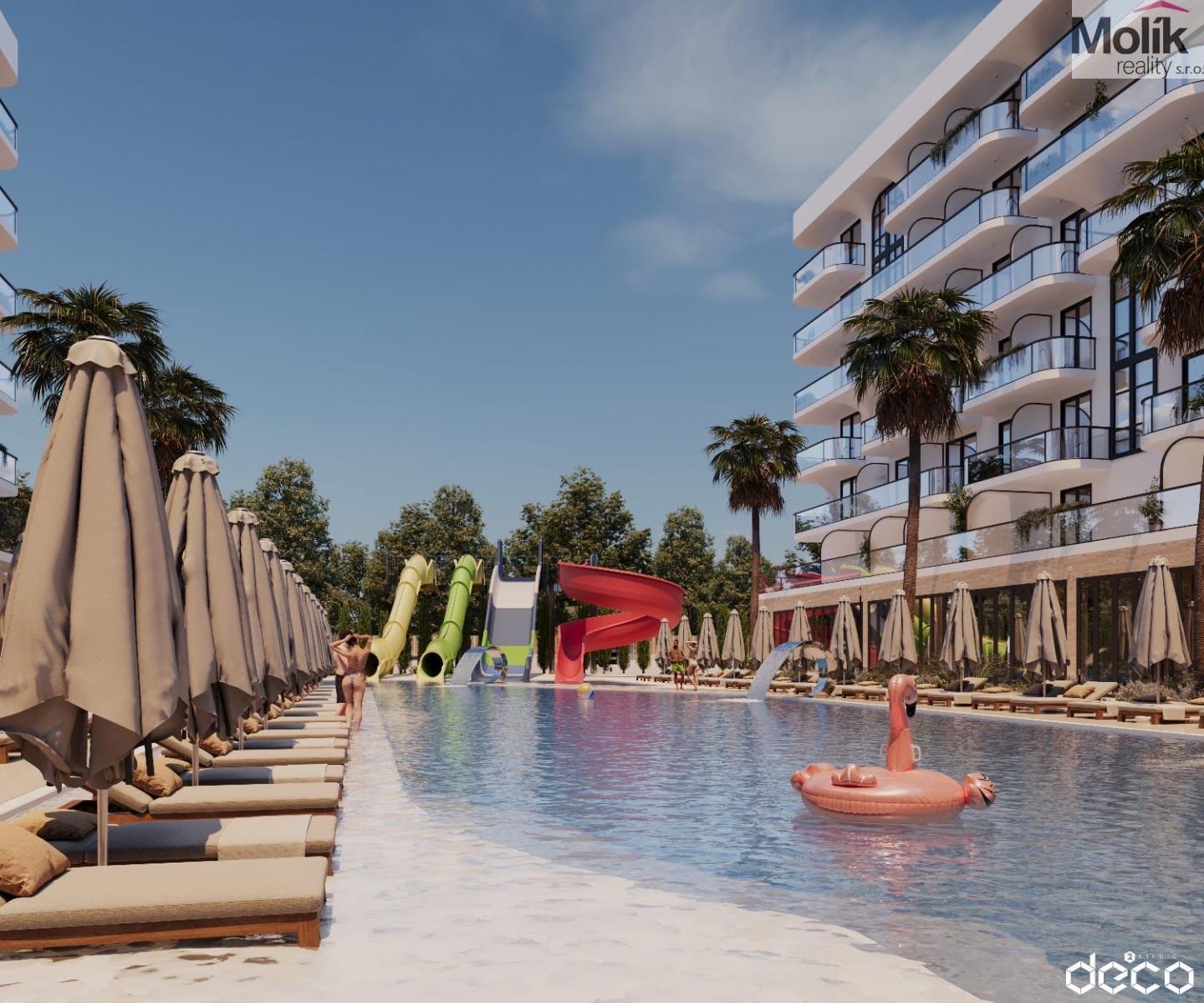Moderní resortový standard: 5 bazénů, aquapark, hotel, bar a restaurace v rámci komplexu, vše pro váš komfort.