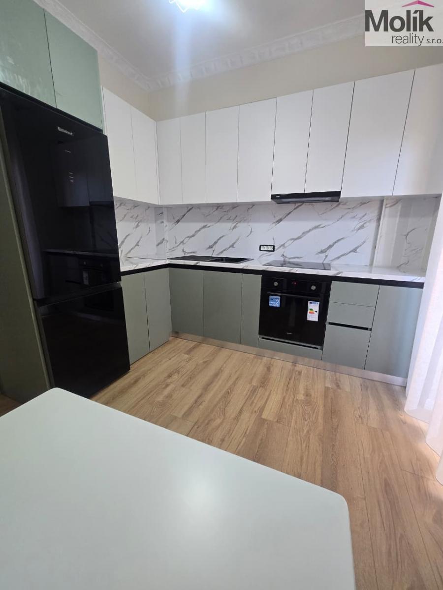 V celém bytě dominují světlé barvy, kvalitní podlahy v dřevodekoru a moderní osvětlení, které dodává interiéru styl a eleganci.