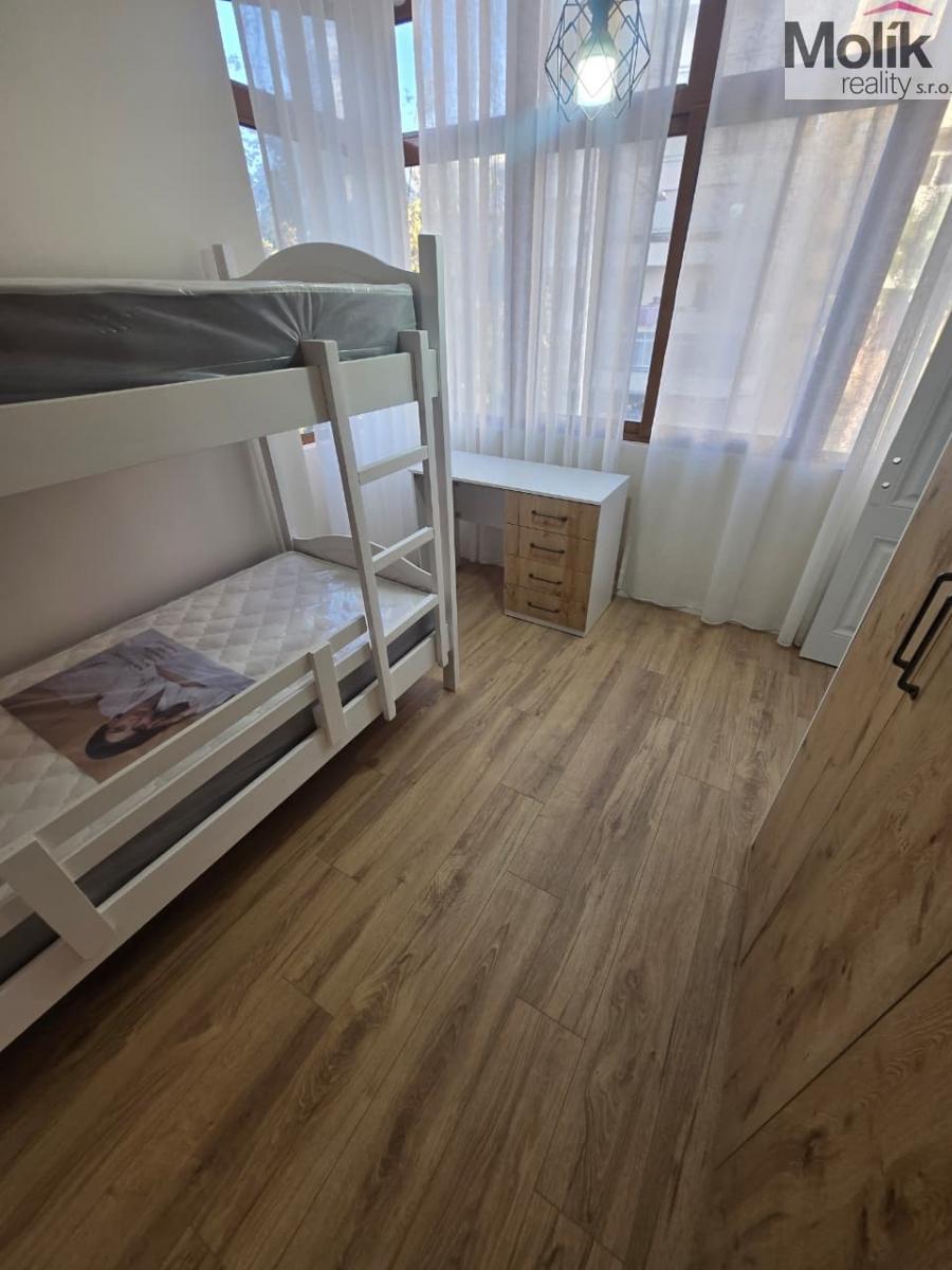 Druhá ložnice je zařízena palandou a úložným prostorem ideální pro děti nebo hosty.
