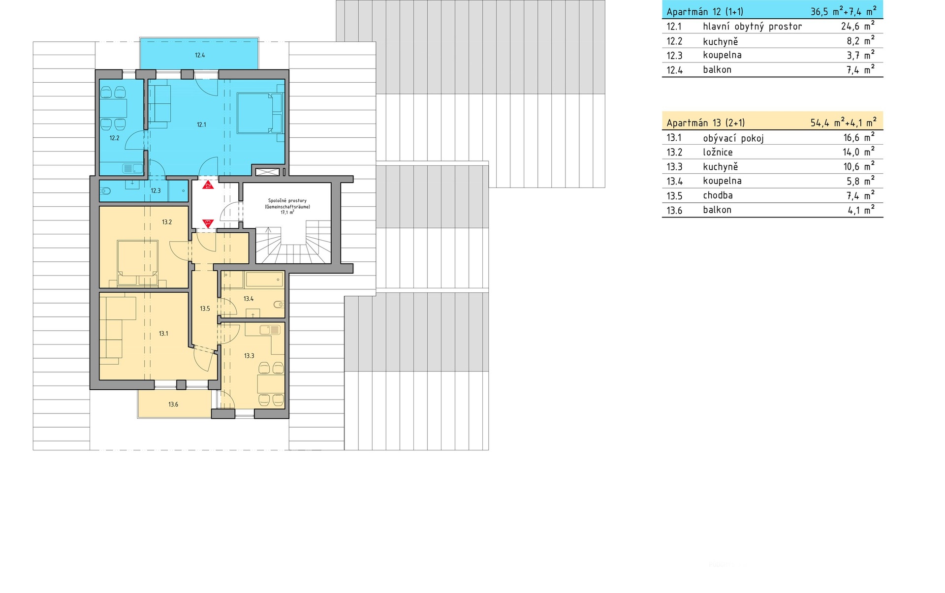 - v kompletně zrekonstruovaném domě se nachází celkem 13 apartmánů pro druhé rezidenční bydlení s možností pouze dlouhodobého pronájmu - bez možnosti denního pronájmu pro komfortní a klidné užití nemovitosti všemi vlastníky