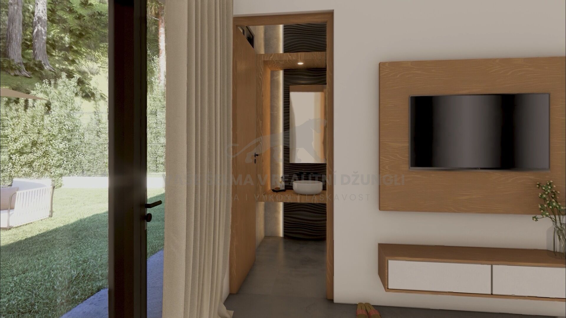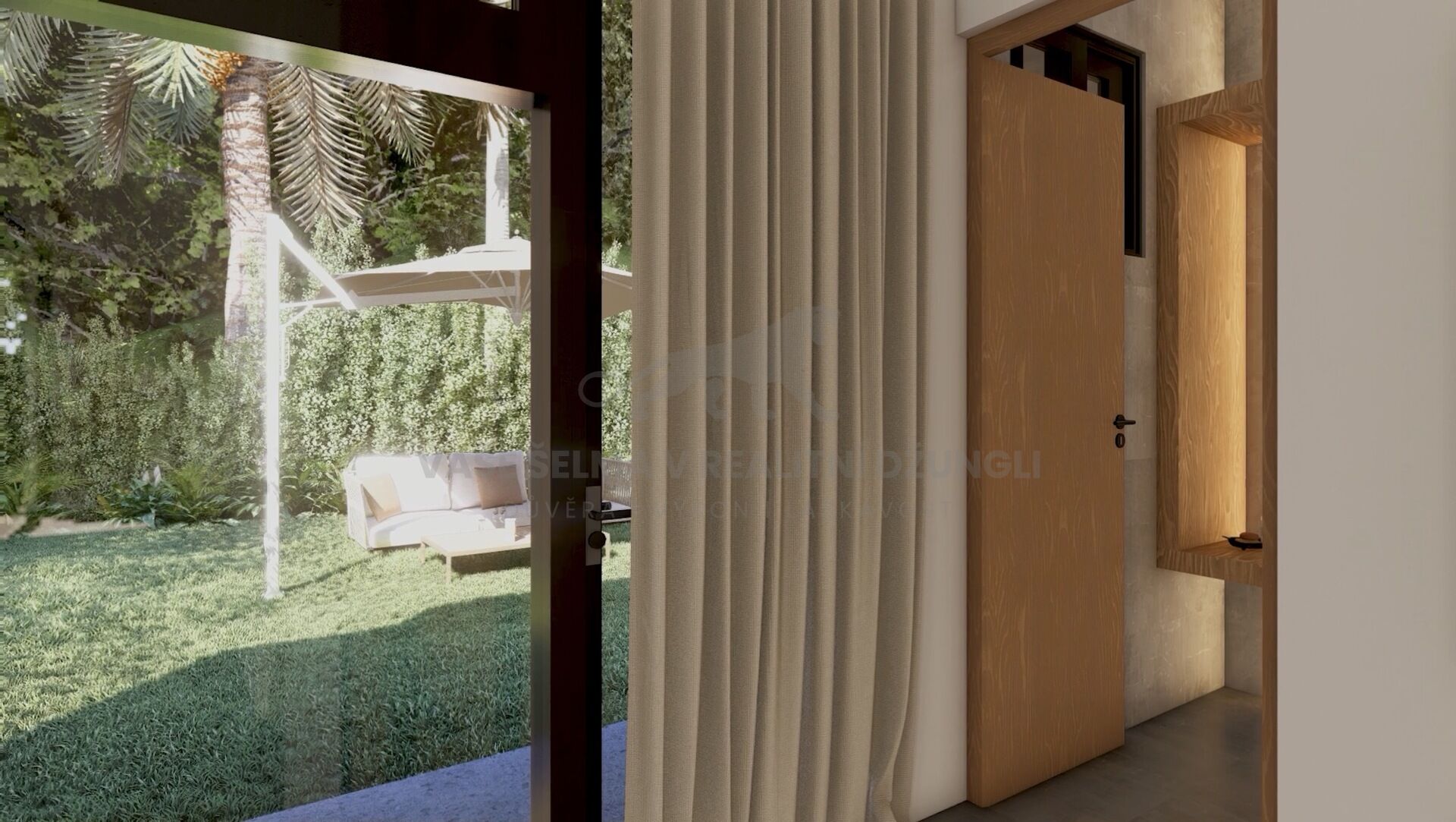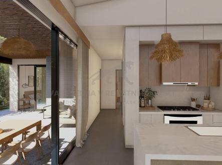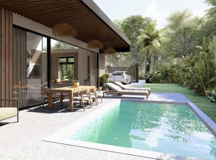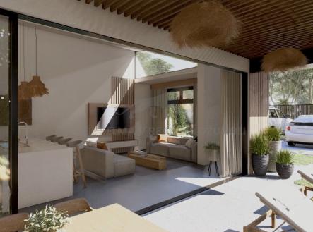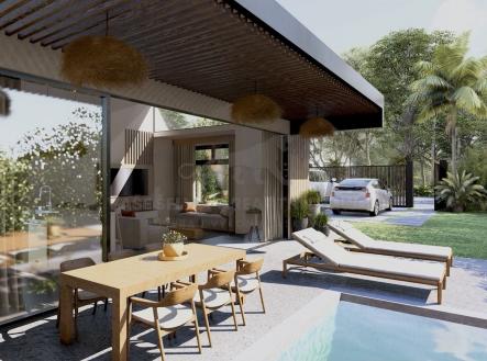 Dům se vyznačuje otevřeným konceptem, který maximálně využívá přirozené světlo a funkčnost, sladěné s rozlehlými skleněnými posuvnými okny, které se otevírají na soukromou terasu a bazén – ideální propojení venkovního divokého živého prostředí s komfortem moderního interiéru pro maximální pocit naplnění.