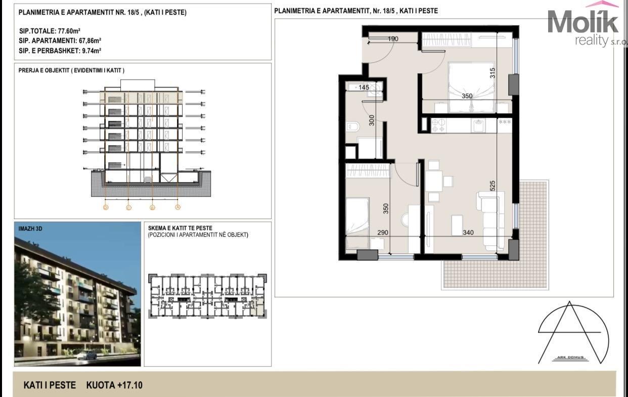 Nabízíme k prodeji apartmán 3+kk o výměře 77.60 m2 se nachází v 5. patře moderního domu s výtahem. Díky vyššímu patru nabízí byt dostatek světla, příjemný výhled a větší klid. Dispozice je navržena velmi prakticky a zahrnuje obývací pokoj s kuchyňským koutem, samostatnou ložnici, koupelnu s toaletou a vstupní chodbu. Součástí bytu je také balkon, ideální pro ranní kávu nebo večerní posezení.