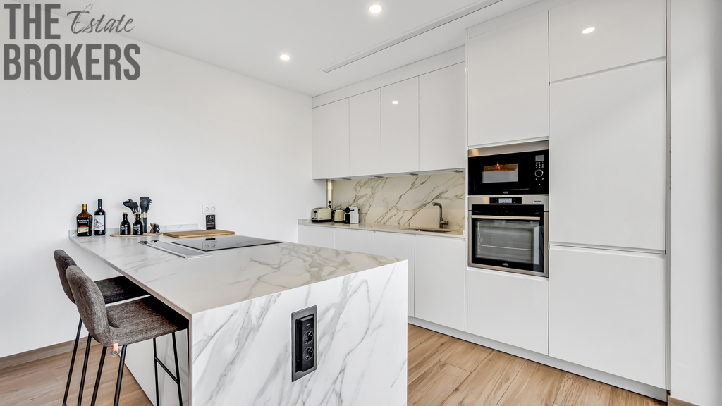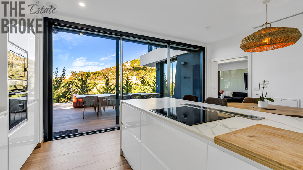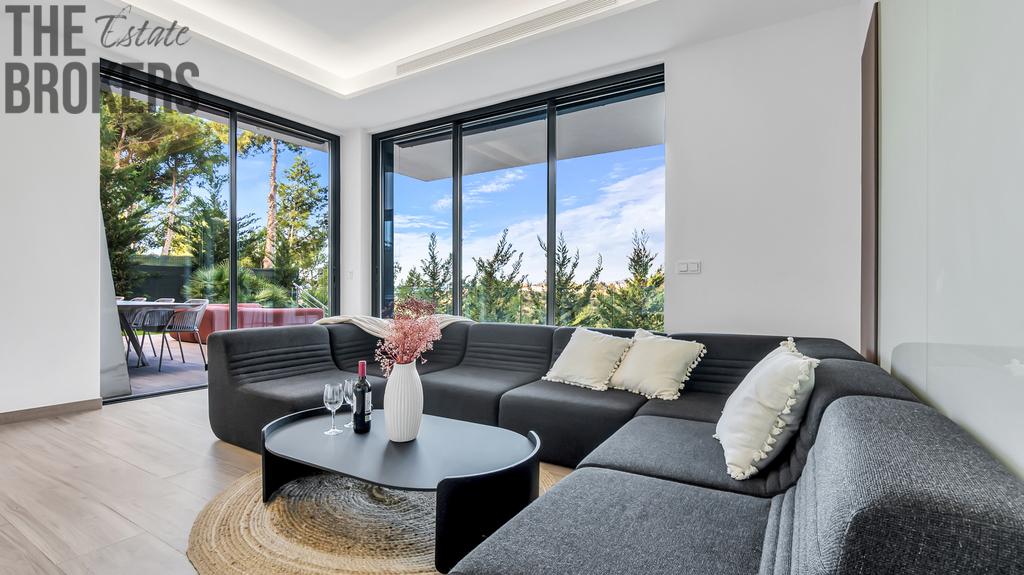 Interiér domu je navržen s důrazem na prostor, světlo a funkčnost. Vila nabízí 5 prostorných ložnic a 4 koupelny, velkorysé obývací prostory, moderní kuchyni s jídelnou a přímé propojení obytné části s venkovními terasami.