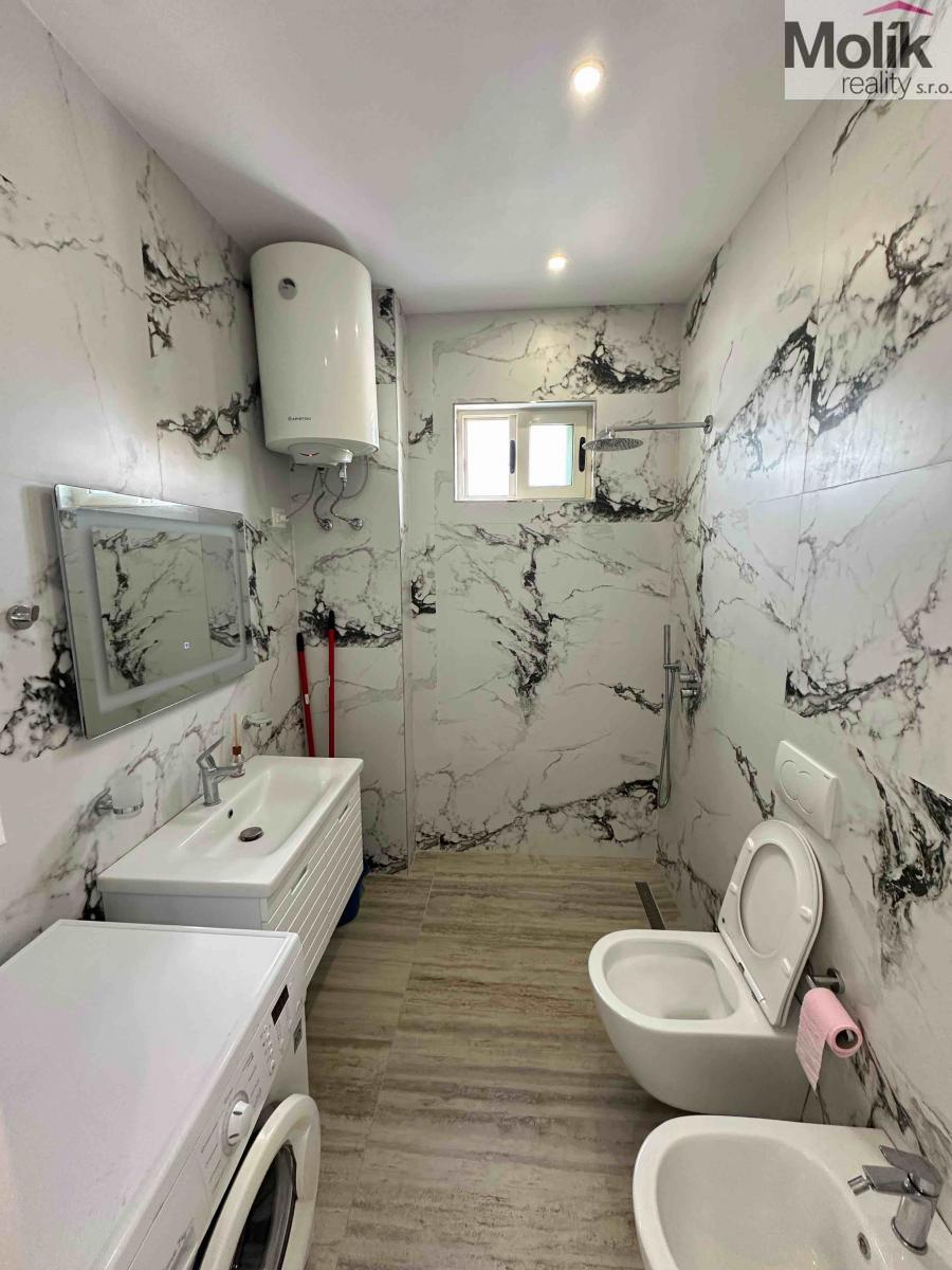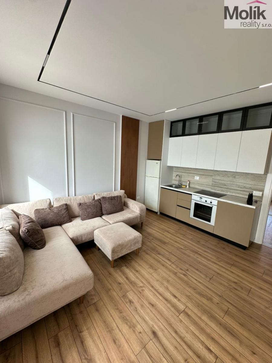 Dispozice: světlý obývací pokoj s plně vybaveným kuchyňským koutem, samostatná ložnice, koupelna. Klimatizace, kvalitní podlahy, moderní design. Prodává se včetně vybavení připraven k okamžitému užívání nebo pronájmu.