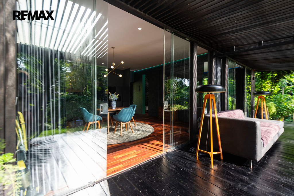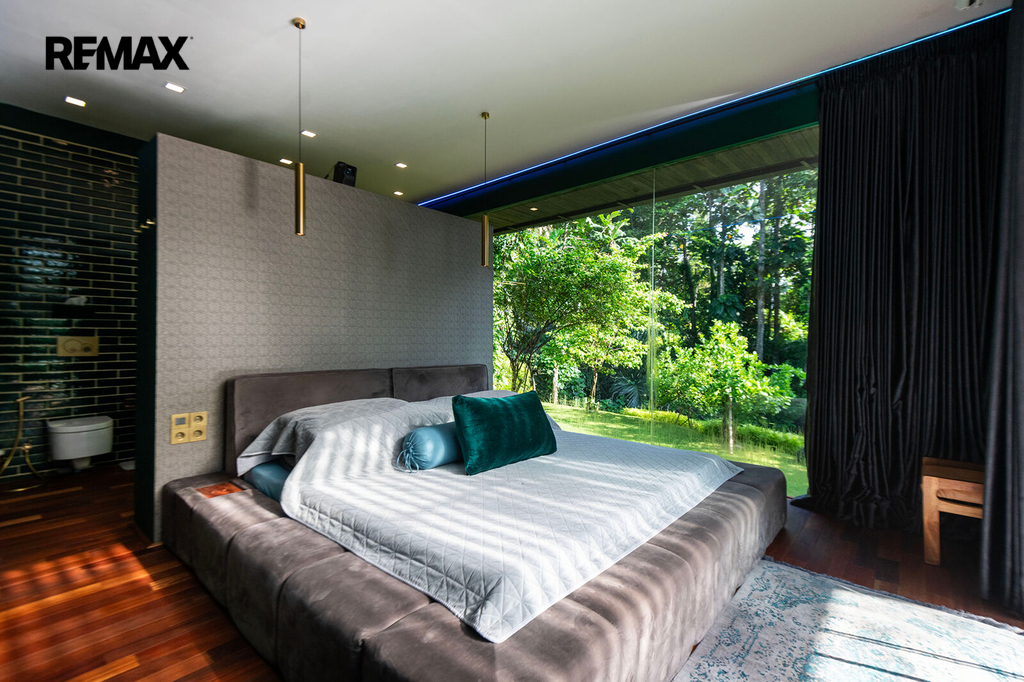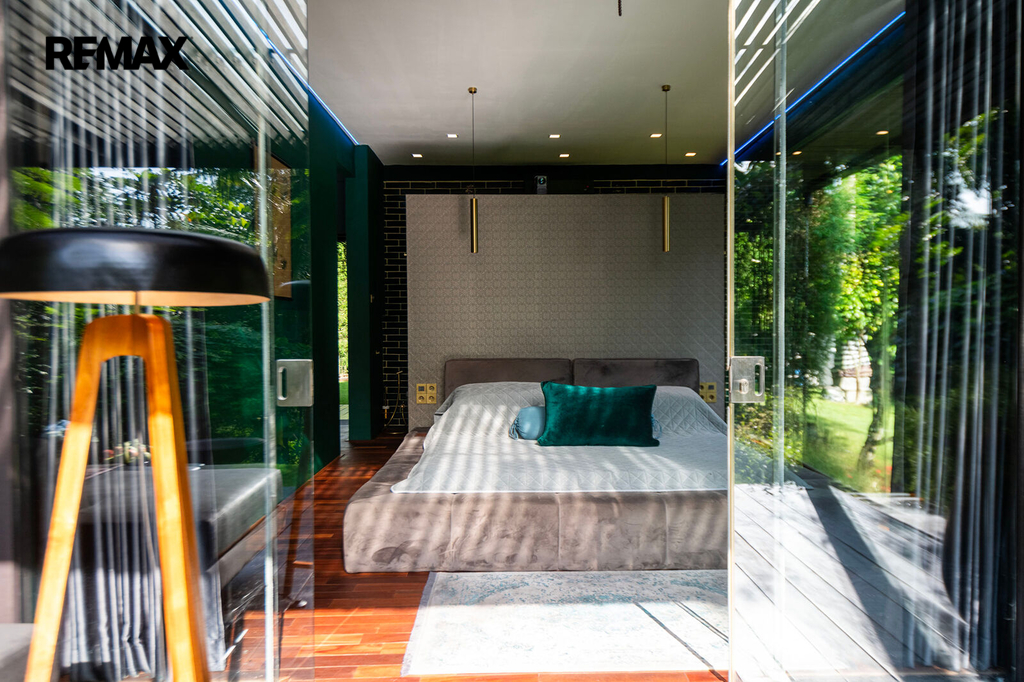 Prostorné interiéry, velkoformátová okna propojující interiér s přírodou, dřevěné podlahy, elegantní kuchyně s výhledem do zahrady, ložnice s přímým vstupem ven a velkolepý obývací prostor – to vše dohromady tvoří neobyčejný domov. Vila disponuje dvěma ložnicemi, ale prostorově působí jako rezidence mnohem větší kategorie.