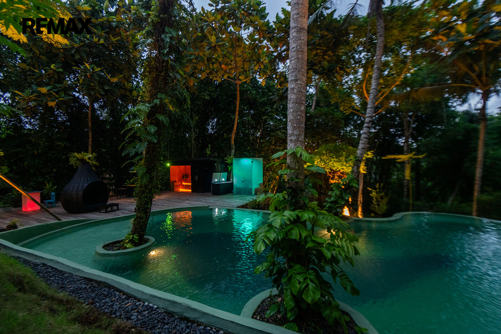 Na pozemku se nachází bazén, který připomíná tropickou lagunu. Zakřivené linie, stromy prorůstající přímo z vody, noční osvětlení, relax zóna se saunou a párou a přírodní pramen… místo, kde zcela zapomenete na realitu.