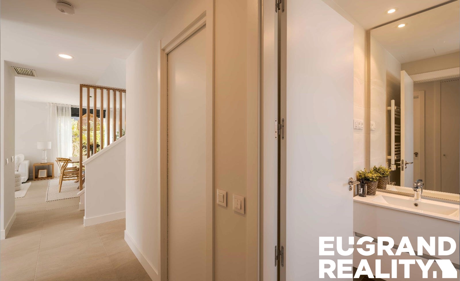 Dispozice domu zahrnuje 4 ložnice a 3 koupelny. Jedna ložnice se nachází v přízemí a je vhodná například jako pokoj pro hosty nebo pracovna. V patře jsou další tři ložnice, včetně hlavní ložnice s vlastní koupelnou a šatnou.
